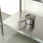The top shelf of these work tables holds hundreds of pounds of heavy equipment such as espresso machines or mixers. Most of our metal tables have an undershelf for extra storage for bowls, bins, or ingredients.