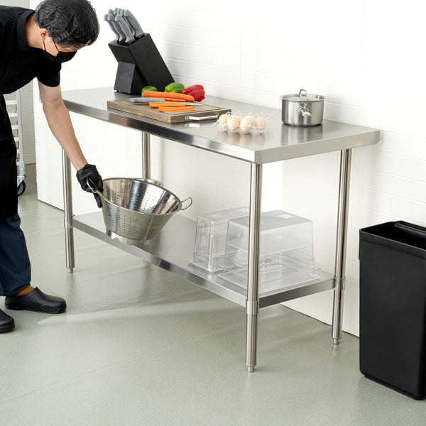 These food prep tables have a smooth surface that can be easily wiped after rolling dough or mixing batter. Not to mention, a few of our tables are equipped with a backsplash to keep ingredients from falling to the floor.
