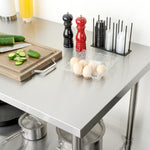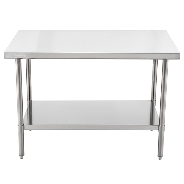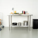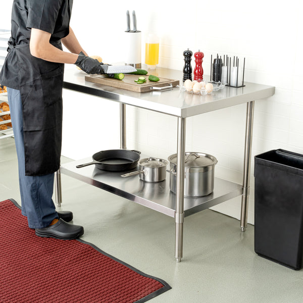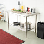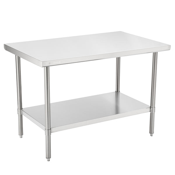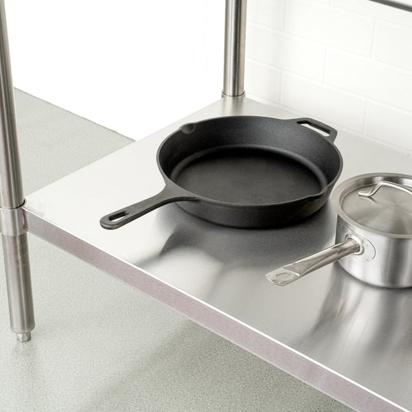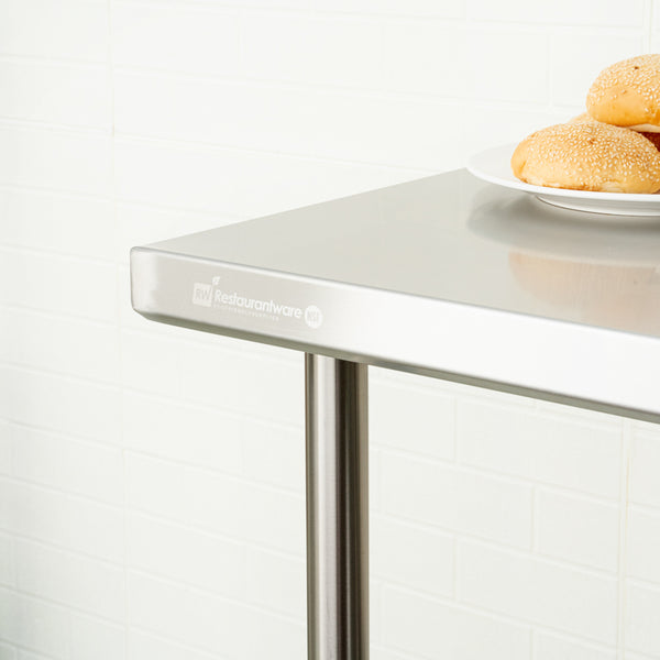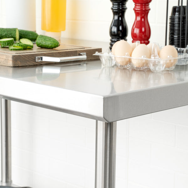The top shelf of these work tables holds hundreds of pounds of heavy equipment such as espresso machines or mixers. Most of our metal tables have an undershelf for extra storage for bowls, bins, or ingredients.