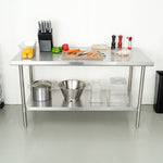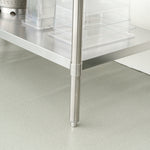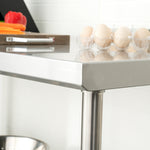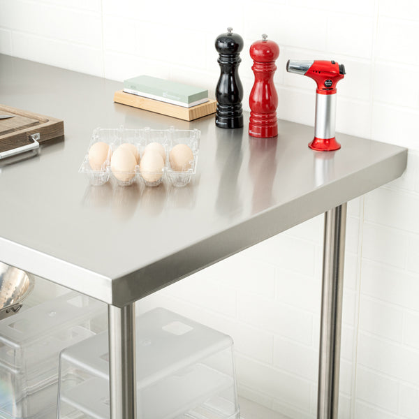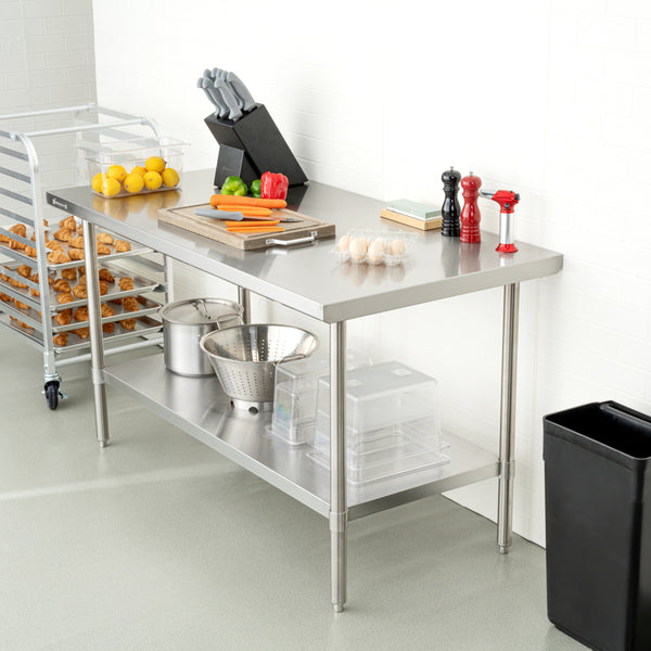 The top shelf of these work tables holds hundreds of pounds of heavy equipment such as espresso machines or mixers. Most of our metal tables have an undershelf for extra storage for bowls, bins, or ingredients.