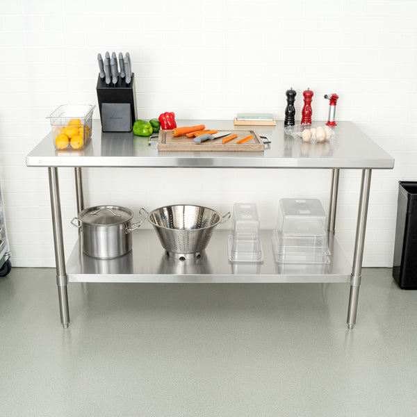 Each of our work tables are constructed with 16- or 18-gauge thickness for long-lasting use. These food prep tables are designed to endure constant use, making them ideal for busy kitchens or your catering business.