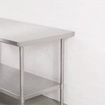 Made from 304 stainless steel, our work tables avoid corrosion, making them great for kitchens with lots of steam. A selection of these tables has galvanized legs and an undershelf for reinforced protection against rusting.