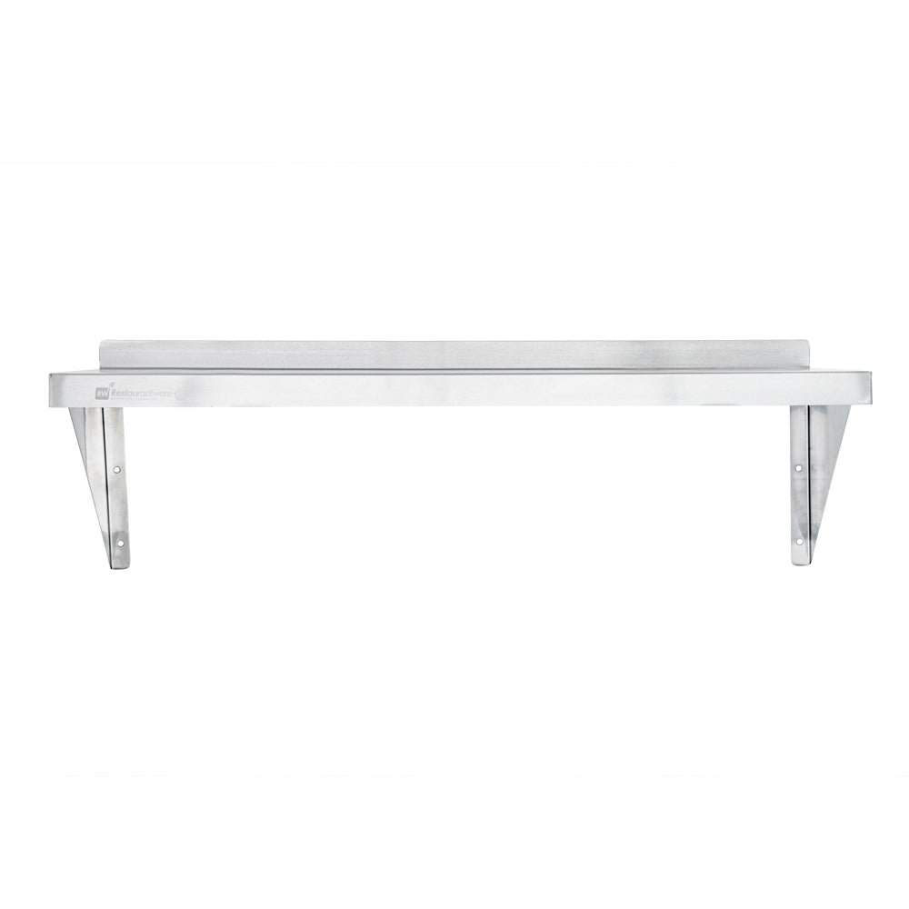 Keep pots and pans out of your staff's way with our Kitchen Tek 16-Gauge 430 Stainless Steel Solid Wall Shelf. Made from 16-gauge 430 stainless steel, this wall-mounted kitchen shelf is heavy-duty and won't scratch or dent easily. Capable of holding up to 250 pounds of containers, this steel wall shelf holds up several boxes of supplies to keep your kitchen organized. Designed without sharp edges, this kitchen wall mount won't injure your employees. To easily wipe clean, this stainless steel shelf has a smooth surface. Featuring 2 support brackets, this commercial kitchen shelf can be securely mounted on an unused wall. Delivered unassembled, this wall mount shell can be easily put together. This wall shelf measures 12 inches wide by 36 inches long by 10 inches tall. Sold in a 1 count box.