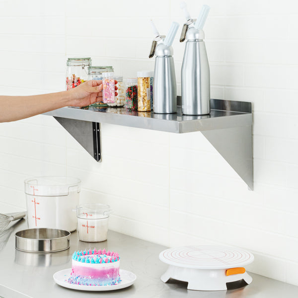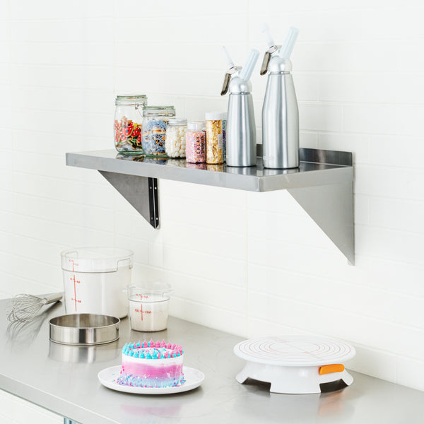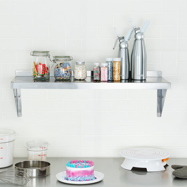 With many sizes to choose from, our food shelves can fit perfectly into areas over your stove, prep area, work table, and more. Select the shelf that fits your needs!
