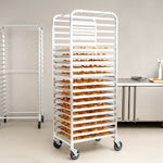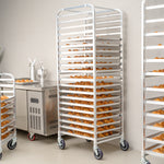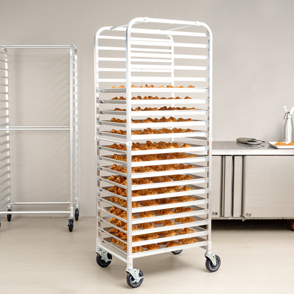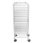 Equipped with four casters, these bun pan racks can be wheeled around to facilitate transporting food or supplies across the kitchen. Plus, the casters include two brakes for additional reliability.