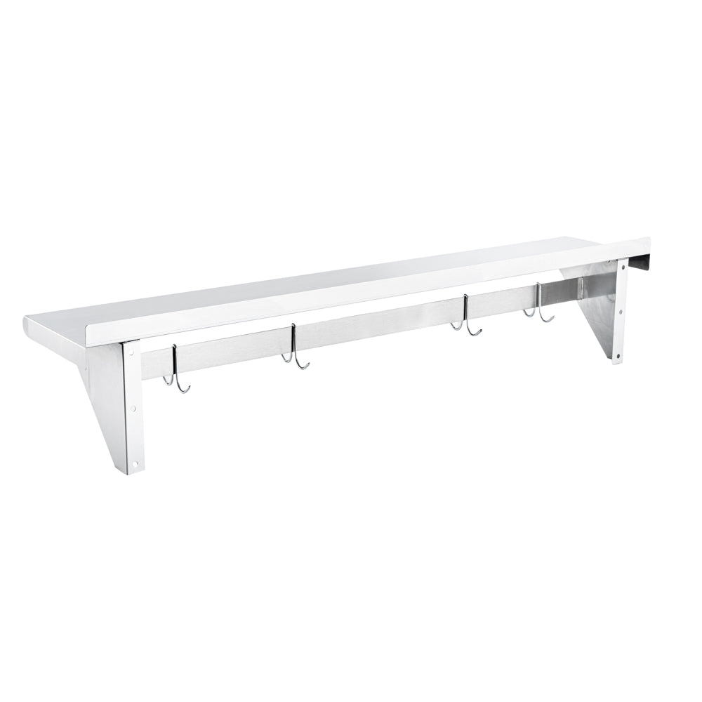 430 STAINLESS STEEL WALL MOUNTED POT RACK - WITH SHELF, 4 HOOKS