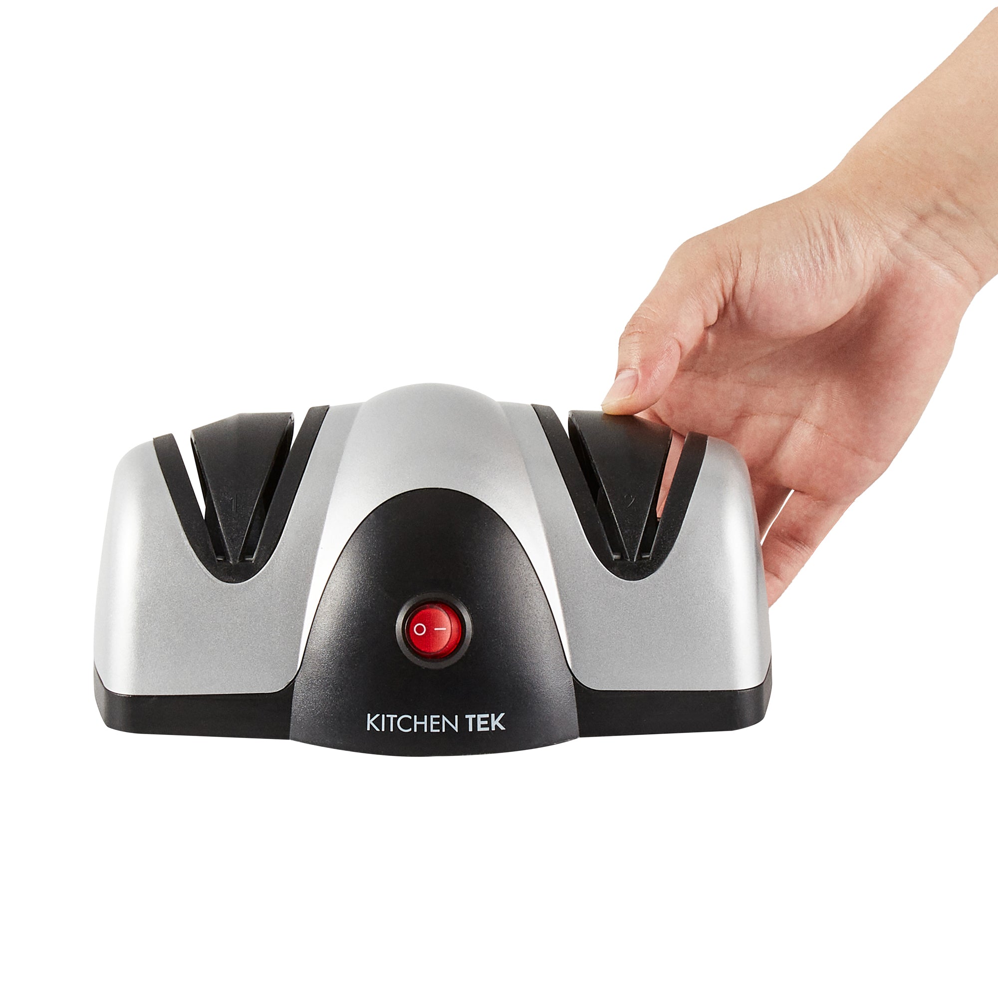 Kitchen Tek Silver Plastic 2 Stage Electric Knife Sharpener - for Straight Edge Knives, 120V - 7 1/2'' x 5 3/4'' x 3 3/4'' - 1 count box