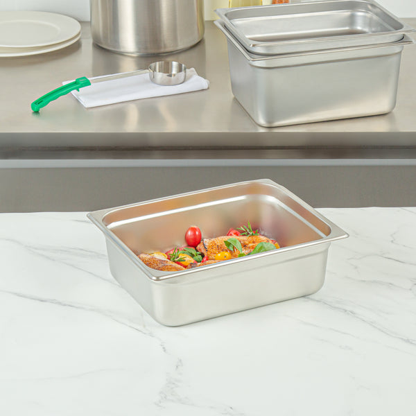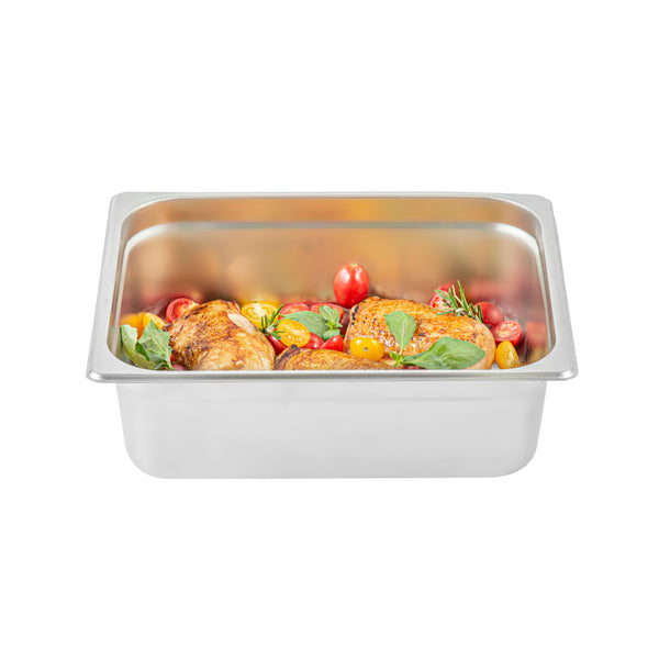 Provide an added layer of protection and freshness! These metal buffet pans can be paired with compatible lids to help keep your food secure and maintain optimal temperature during service.