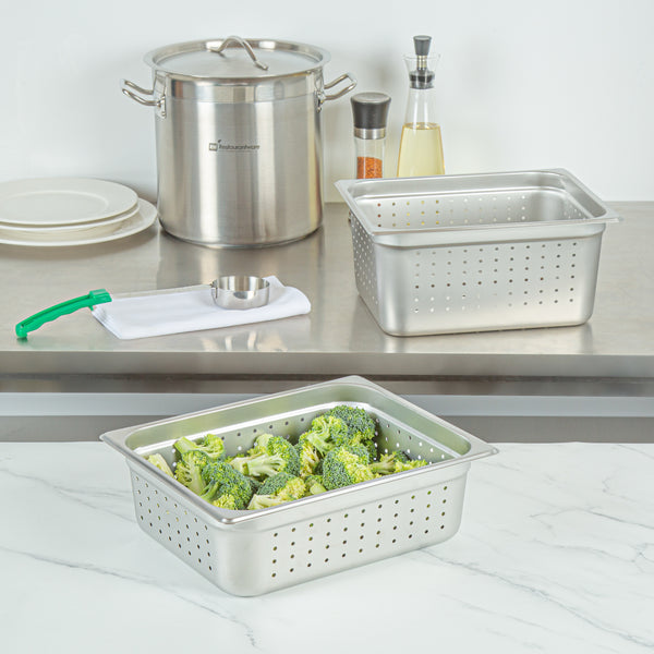 These steam table pans are crafted for versatility, with options in both solid and perforated designs to accommodate different cooking and serving needs. Choose the perfect style to streamline food preparation and presentation.