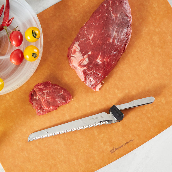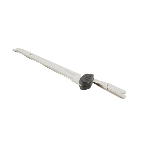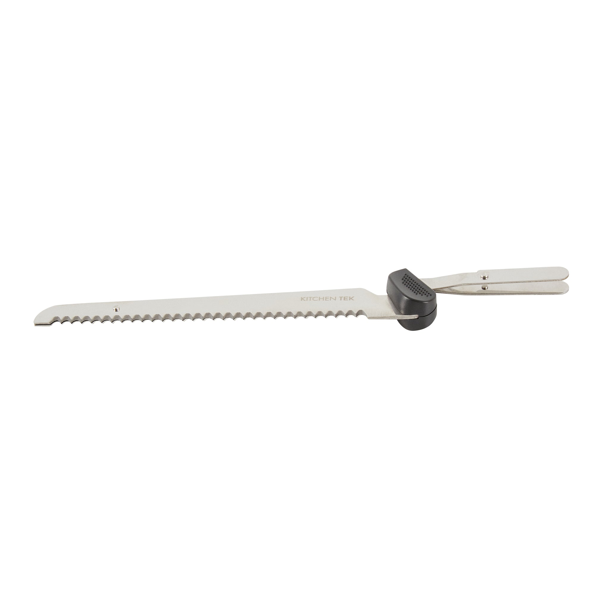 Enhance your kitchen efficiency with our Kitchen Tek Stainless Steel 10-inch Meat Blade. This meat carving knife is a direct replacement for the blade in the compatible cordless lithium electric knife set (SKU: RWT1967B). The sturdy and serrated design of this meat slicing knife effortlessly slices through poultry, roasts, and various other meats, significantly cutting down on preparation time. This stainless steel blade knife is durable and withstands everyday use, ensuring longevity. Plus, this meat cutting knife features a detachable blade design for quick and easy cleaning, ensuring optimal hygiene in your kitchen. This meat knife can be kept as an extra, preventing cross-contamination when immediate cleaning isn't possible. Measuring 10.04 inches in length by 1.26 inches in width, this electric meat knife is perfectly sized for a variety of culinary tasks. Sold in a 1 count box. Knife set is available and sold separately.