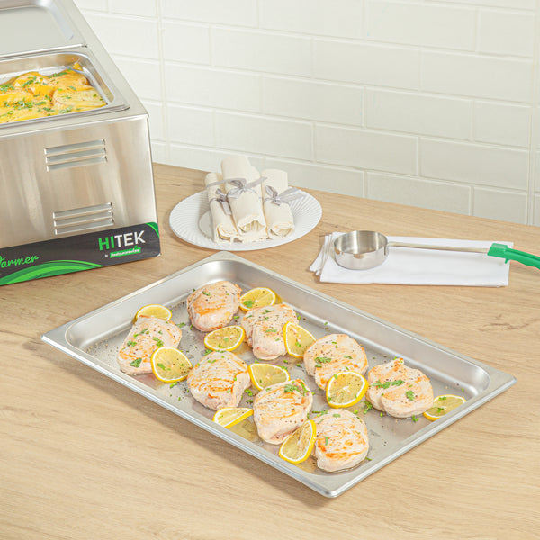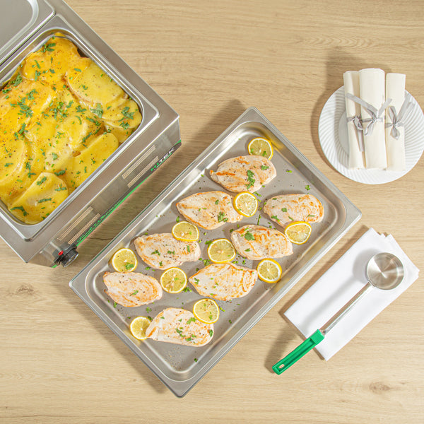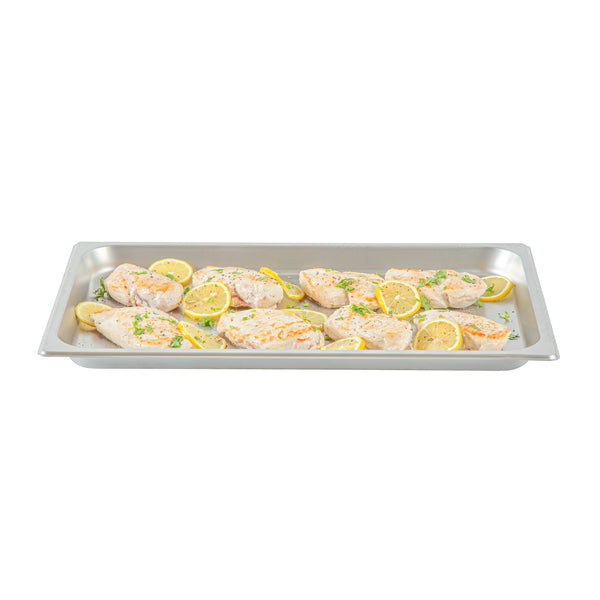 Provide an added layer of protection and freshness! These metal buffet pans can be paired with compatible lids to help keep your food secure and maintain optimal temperature during service.