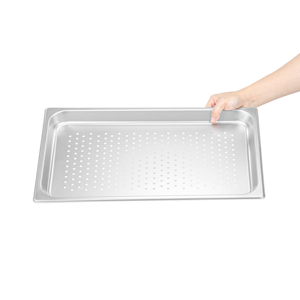 STAINLESS STEEL FULL SIZE STEAM TABLE PAN -1 1/4 INCH DEEP, PERFORATED