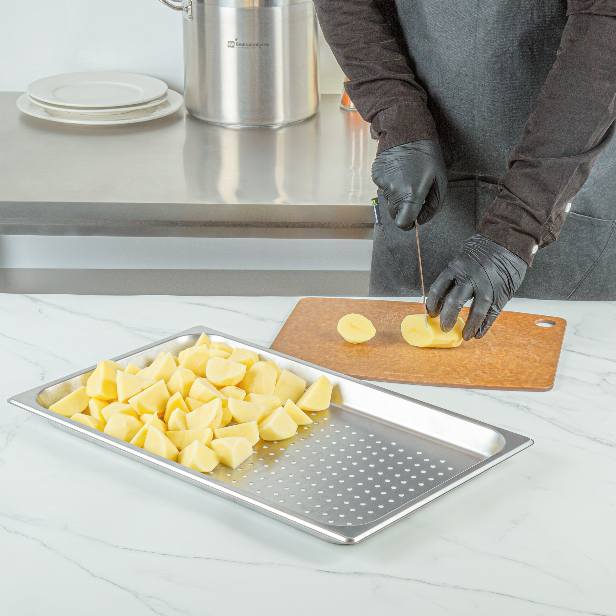 These steam table pans are crafted for versatility, with options in both solid and perforated designs to accommodate different cooking and serving needs. Choose the perfect style to streamline food preparation and presentation.