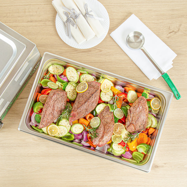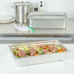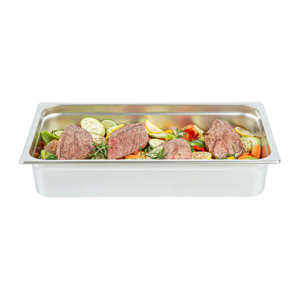 Provide an added layer of protection and freshness! These metal buffet pans can be paired with compatible lids to help keep your food secure and maintain optimal temperature during service.