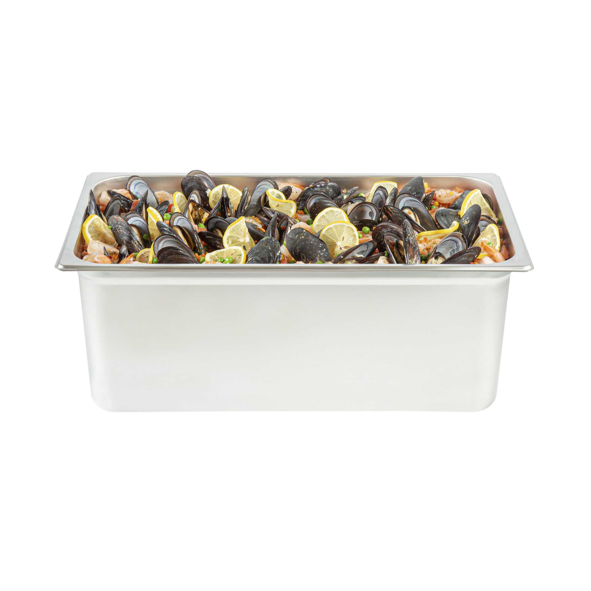Provide an added layer of protection and freshness! These metal buffet pans can be paired with compatible lids to help keep your food secure and maintain optimal temperature during service.