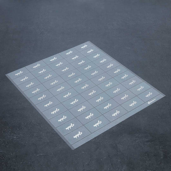 Label Tek Plastic Apple Label - Clear with White Font, Water-Resistant - 2