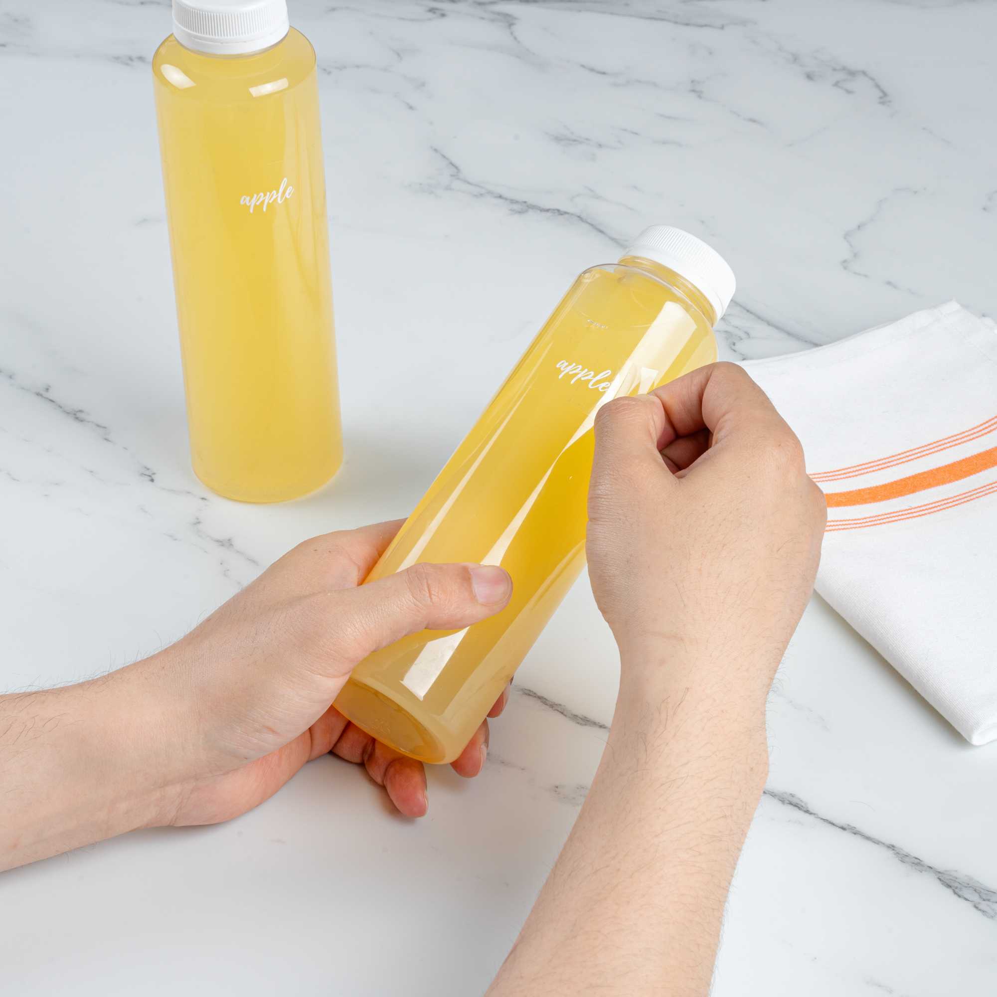 Make bottled apple juices easy to distinguish in drink cases using our Label Tek Plastic Apple Labels. These water-resistant fruit juice labels can hold up to condensation from chilled juices, ensuring they stay legible and don't peel off. Each beverage label reads "apple" in cursive font to enhance the look of bottled apple juices while preventing employees from mixing up drink orders. These apple labels feature a clear background that creates a seamless look on bottles or containers and offers guests a full view of fresh apple juices offered at your foodservice establishment. Plus, they bring a trendy and stylish look to grab-and-go juices which eliminates the need for customized labels. Coordinate these water-resistant labels with our selection of tamper-evident juice bottles and drink pouches to prevent accidental messes when serving customers' drink orders. Measuring 2 inches long by 1 inch wide, these apple stickers come in a sheet to streamline your labeling process. Shipped in a 100 count box. Juice bottles and drink pouches are available and sold separately. Browse our collection of drink labels to find the perfect packaging solution for to-go juices.