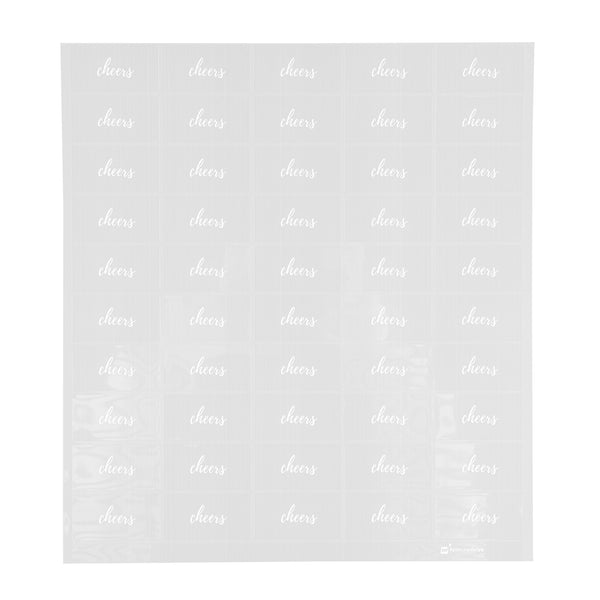 PLASTIC CHEERS LABEL - CLEAR WITH WHITE FONT, WATER-RESISTANT