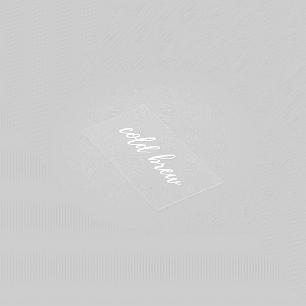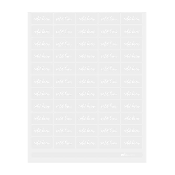 PLASTIC COLD BREW LABEL - CLEAR WITH WHITE FONT, WATER-RESISTANT