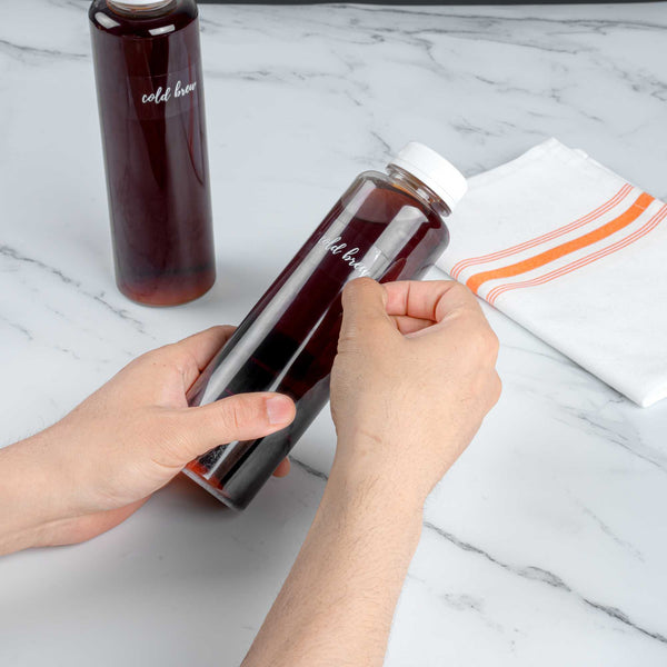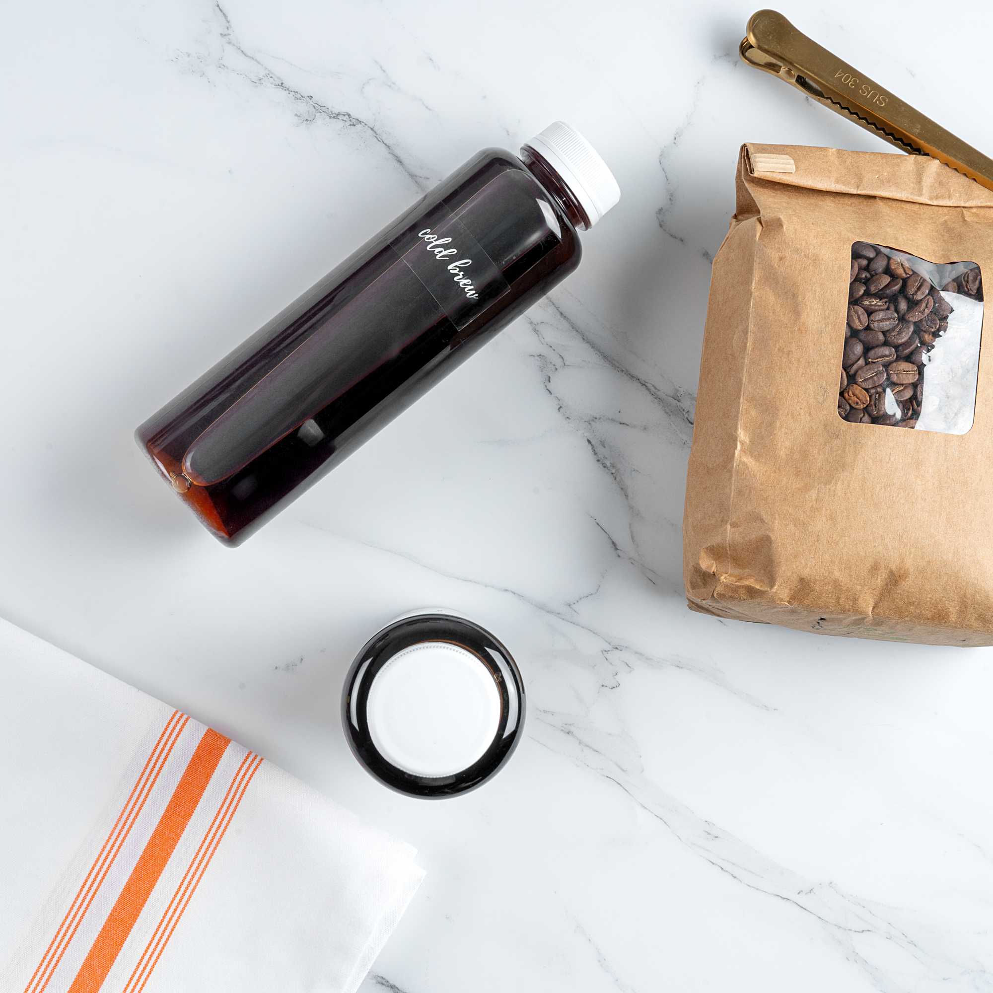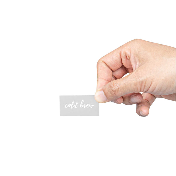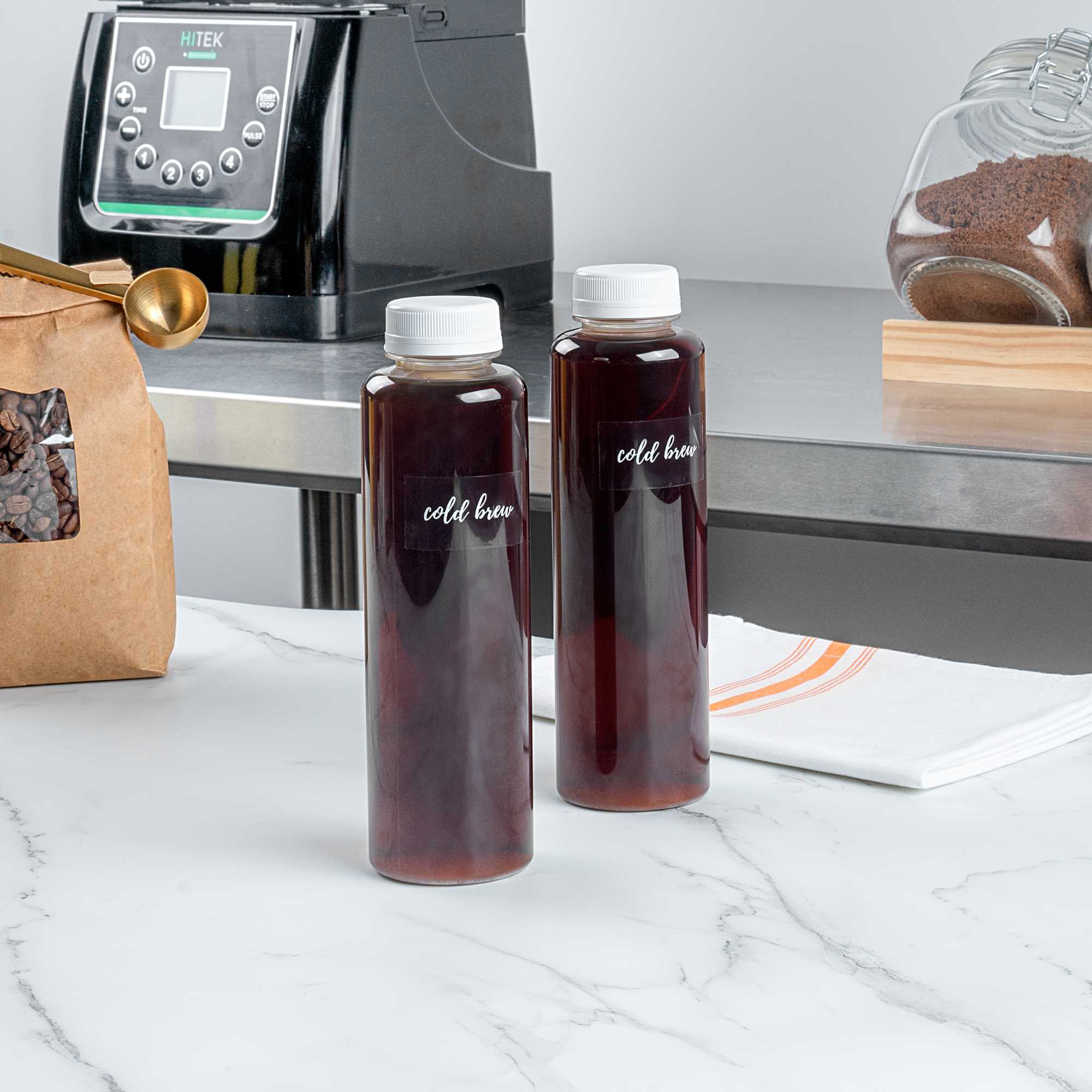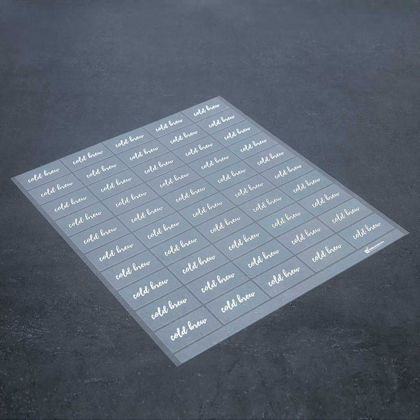 Label cold brews for take out and delivery services to increase order accuracy using our Label Tek Plastic Cold Brew Labels. These water-resistant stickers are durable and designed to resist condensation and prevent labels from peeling off. Reading "cold brew" in a white cursive font, these labels for drinks provide prepackaged cold brews with a stylish and trendy look that eliminates the need for customized labels. Plus, they allow your customers to quickly distinguish cold brews to minimize unnecessary contact with other bottled beverages. These coffee labels have a clear finish that provides a seamless look on bottles and showcases the fresh cold brews offered at your coffee shop, cafe, or restaurant. Securely seal cold brews for transport by coordinating these coffee stickers with our selection of tamper-evident juice bottles and drink pouches. Measuring 2 inches long by 1 inch wide, these plastic drink labels come in a sheet to provide you a quick and effortless way to label bottled cold brews. Sold in a 100 count box. Drink pouches and juice bottles are available and sold separately. Browse our collection of beverage labels to enhance your business's organization.