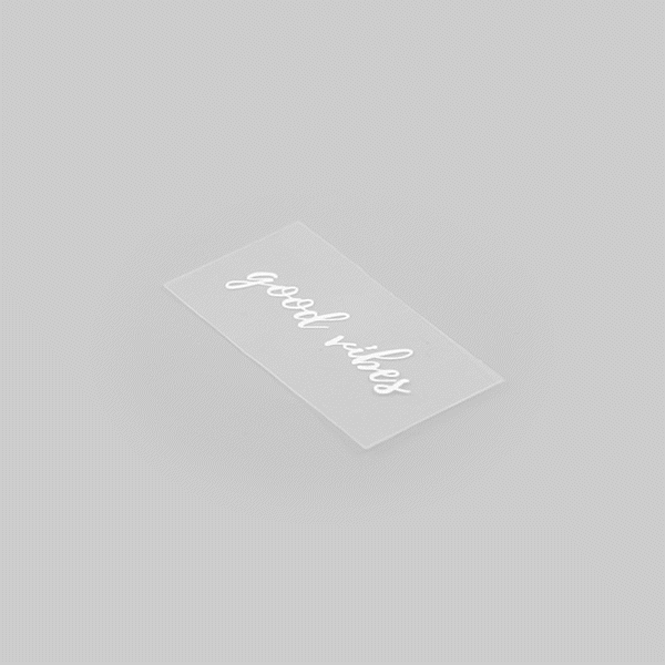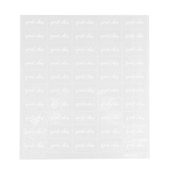 PLASTIC GOOD VIBES LABEL - CLEAR WITH WHITE FONT, WATER-RESISTANT