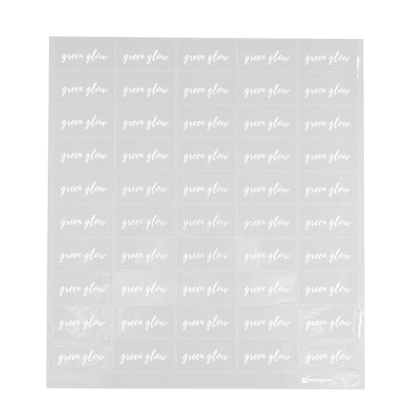 Use our Label Tek Plastic Green Glow Labels to neatly organize your green juices. These durable drink stickers are water-resistant, ensuring they stay legible and don't peel off when labeled drinks are stored in commercial refrigerators. These juice stickers read "GREEN GLOW" in a white cursive font that effortlessly brings a one-of-a-kind look to bottled juices and increases order accuracy at your foodservice establishment. Featuring a clear background, these green juice labels provide a cohesive look on juice bottles and drink pouches while bringing a charming twist to grab-and-go beverages. Plus, they immediately capture the attention of guests to eliminate the need for placing customized labels on juice bottles. Coordinate these green glow juice labels with our tamper-evident juice bottles and drink pouches to help keep to-go juices fresher for longer and avoid messy spills during transport. These green drink labels are perfect for labeling green juices that are filled with nutrients to make your customers feel nourished. Measuring 2 inches long by 1 inch wide, these glowing green juice labels come in a sheet to offer your staff a speedy way to label cold-pressed juices or juice shots. Shipped in a 100 count box. Drink pouches and juice labels are available and sold separately. Browse our collection of juice labels to ensure grab-and-go beverages in drink displays are neatly organized and easy to identify.