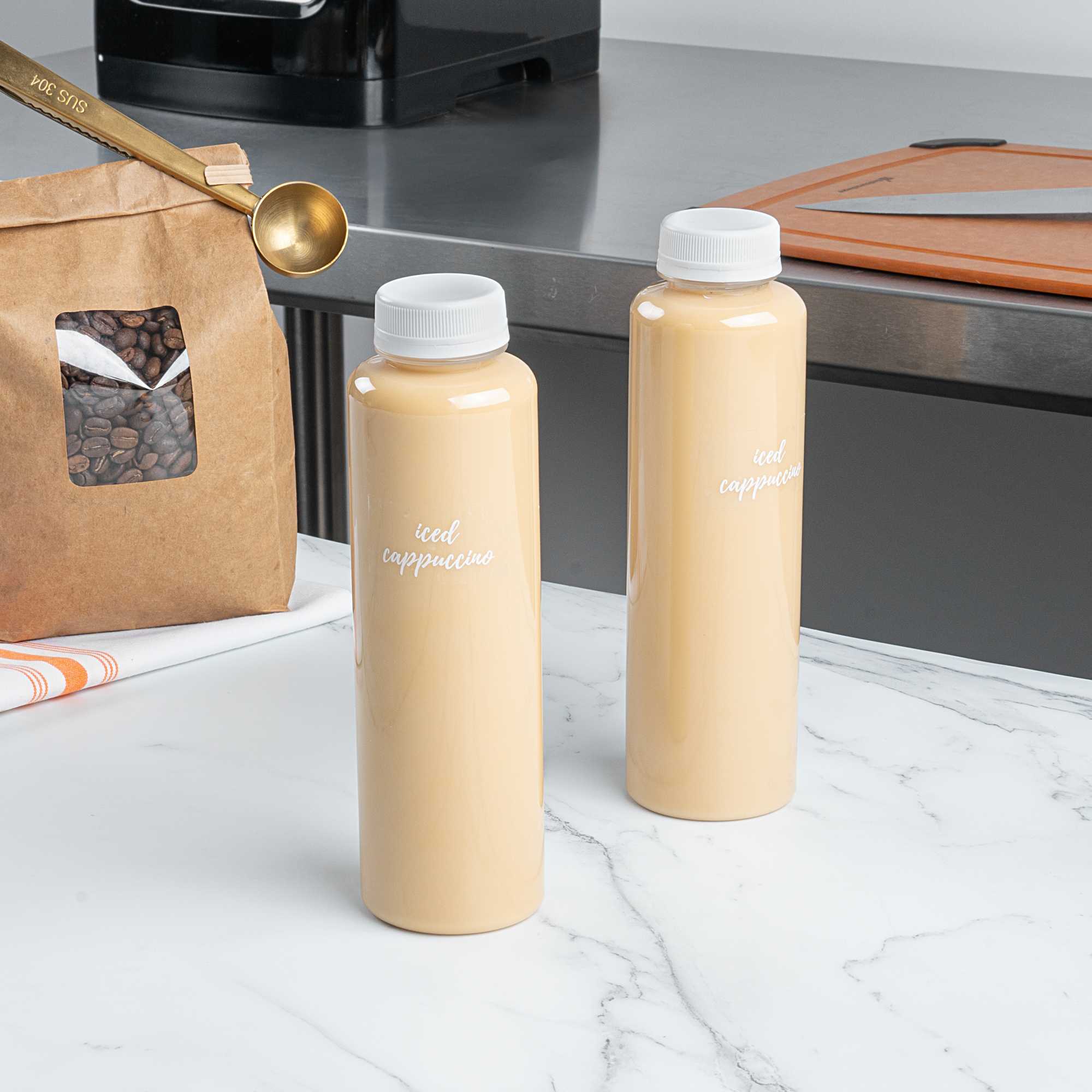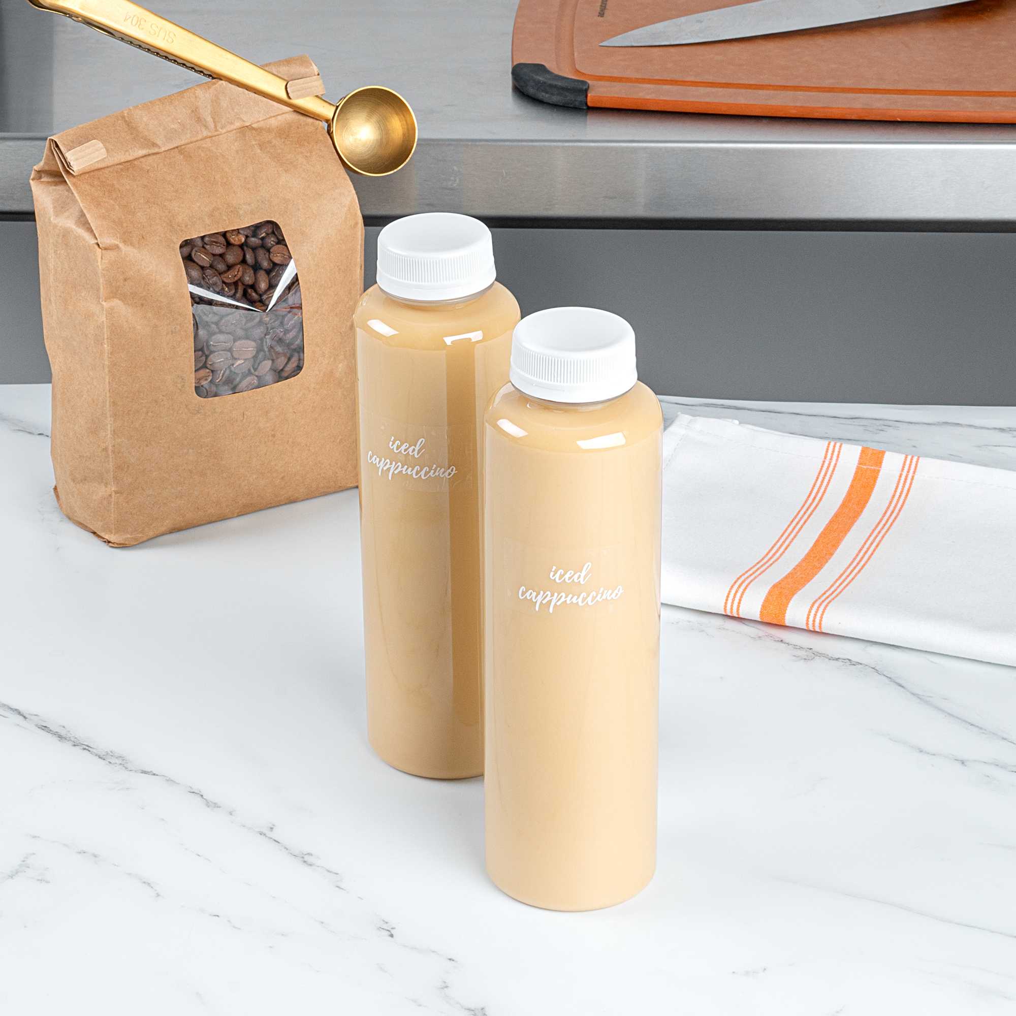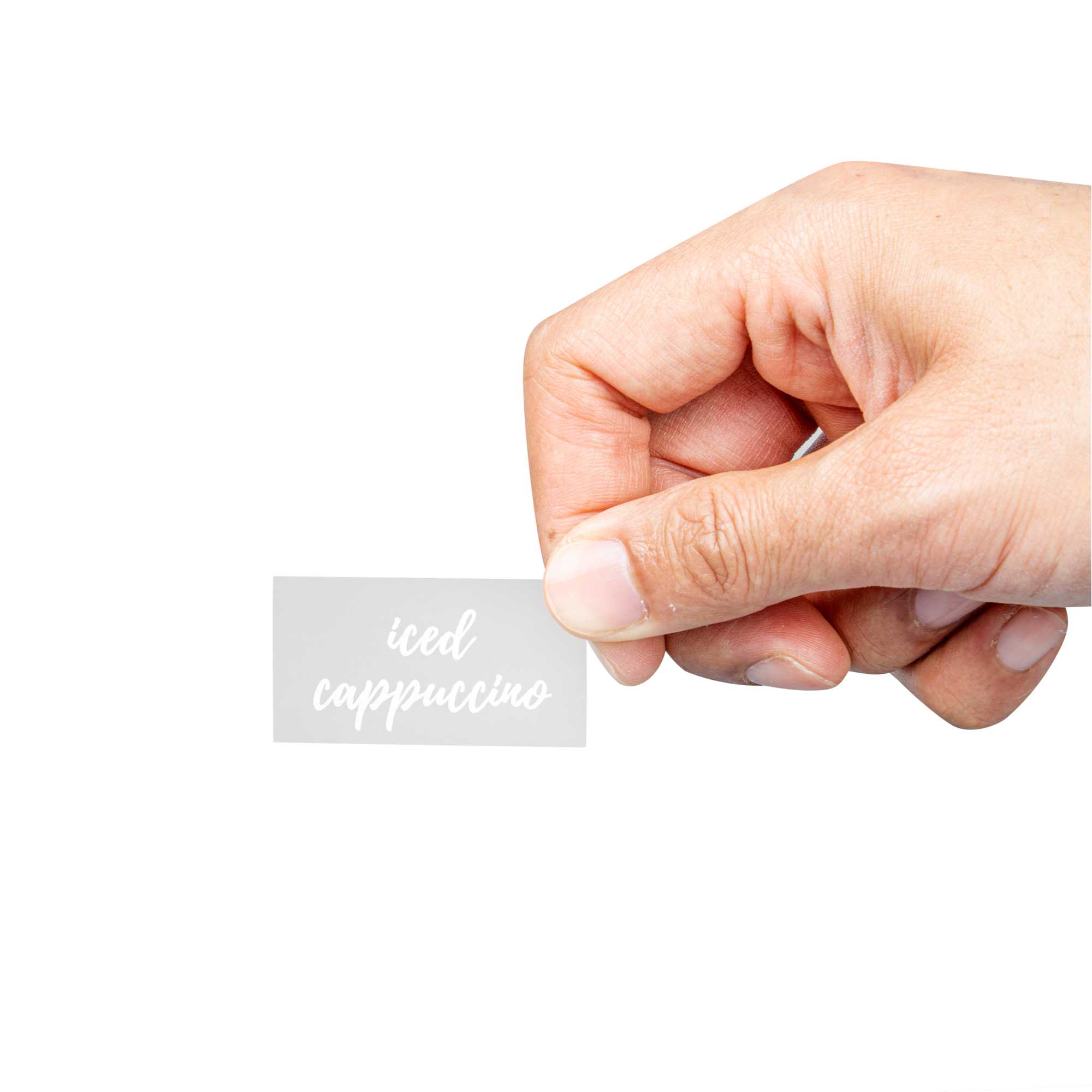Draw the attention of customers to your bottled cappuccinos by labeling them with our Label Tek Plastic Iced Cappuccino Labels. With a water-resistant design, these durable coffee labels allow you to store labeled beverages in drink displays without worrying about labels smudging or peeling off. These water-resistant labels read "iced cappuccino" in a trendy font to elevate the appearance of grab-and-go cappuccinos while providing guests with a quick way to identify them in drink cases. Featuring a clear background, these cappuccino labels create a seamless look on coffee bottles while showcasing the colors of your bottled cappuccinos. These iced drink stickers bring a one-of-a-kind look to your to-go cappuccinos while eliminating the need for personalized stickers. Safely deliver iced cappuccinos to your customers' homes or to off-site catering events by pairing these coffee stickers with our tamper-evident juice bottles and drink pouches. Measuring 2 inches long by 1 inch wide, these cappuccino stickers arrive in a sheet that allows you to label to-go cappuccinos with ease. Shipped in a 100 count box. Juice bottles and drink pouches are available and sold separately. Browse our collection of drink labels to enhance your establishment's organization and increase order accuracy.