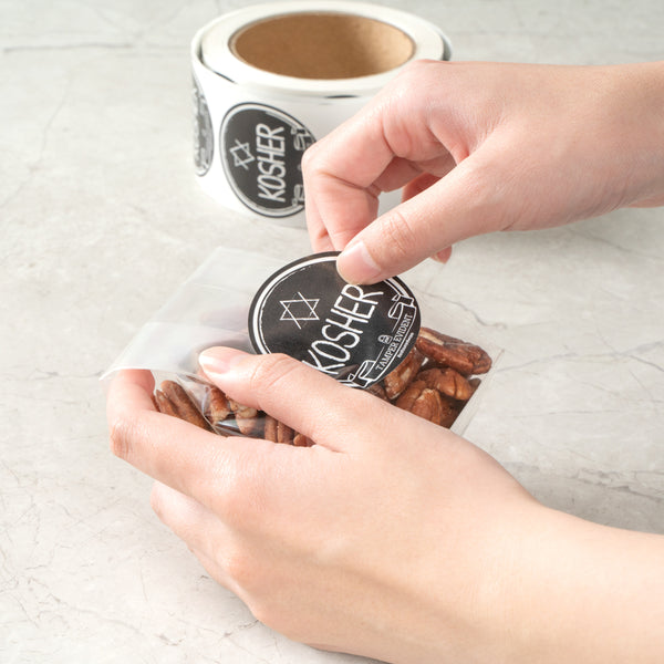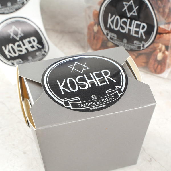 Allow customers to quickly spot kosher meals with our Label Tek Plastic Kosher Labels. Ideal for kosher dishes and snacks, these tamper labels have the image of the star of David and a "KOSHER" message for quick identification to reduce customer contact with multiple food containers. The tamper-evident construction of these adhesive security labels instantly leave a "VOID" message on containers as soon as they have been peeled off. Built with a strong adhesive, these tamper stickers securely seal your delivery bags, take boxes, and more. Featuring a chalkboard inspired design, these void stickers provide your packaging presentation with style and a cohesive look. As a bonus, these tamper-resistant labels have a black background and white lettering so employees can easily read them and increase order accuracy to avoid confusion when handing out meals. Each of these anti-tamper labels measure 2 inches in diameter. Sold in a 500 count box. Browse our selection of tamper-evident labels to find the perfect packaging solution for your take out orders.