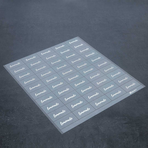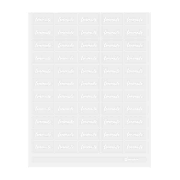 PLASTIC LEMONADE LABEL - CLEAR WITH WHITE FONT, WATER-RESISTANT