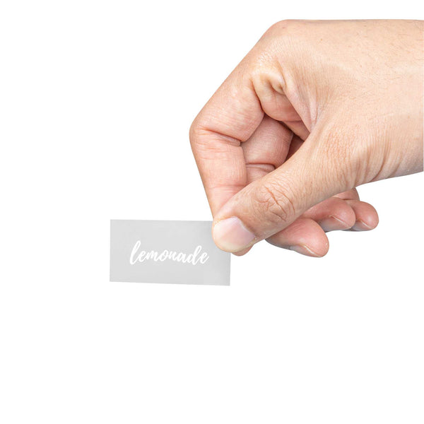 Avoid mixing up beverage orders with our Label Tek Plastic Detox Cleanse Labels. Built to hold up to condensation, these fruit juice labels are water-resistant to prevent stickers from peeling off. Reading "lemonade" in a white cursive font, these beverage bottle labels allow customers to effortlessly identify prepackaged lemonade drinks in grab-and-go cases. Featuring a clear background, these lemonade stickers give bottles a stylish and cohesive appearance. Plus, they create a unique look and eliminate the need for personalized labels. Combine these beverage labels with our tamper-evident juice bottles and drink pouches to easily prevent messes while transporting delivery orders. These juice pouch labels are perfect for labeling lemonade drinks to refresh customers with their favorite fruit drinks. Measuring 2 inches long by 1 inch wide, these juice pouch labels come in a sheet to make it easy for employees to label beverage containers. Sold in a 100 count box. Juice bottles and drink pouches are available and sold separately. Browse our selection of juice labels to optimize organization methods in your foodservice establishment.