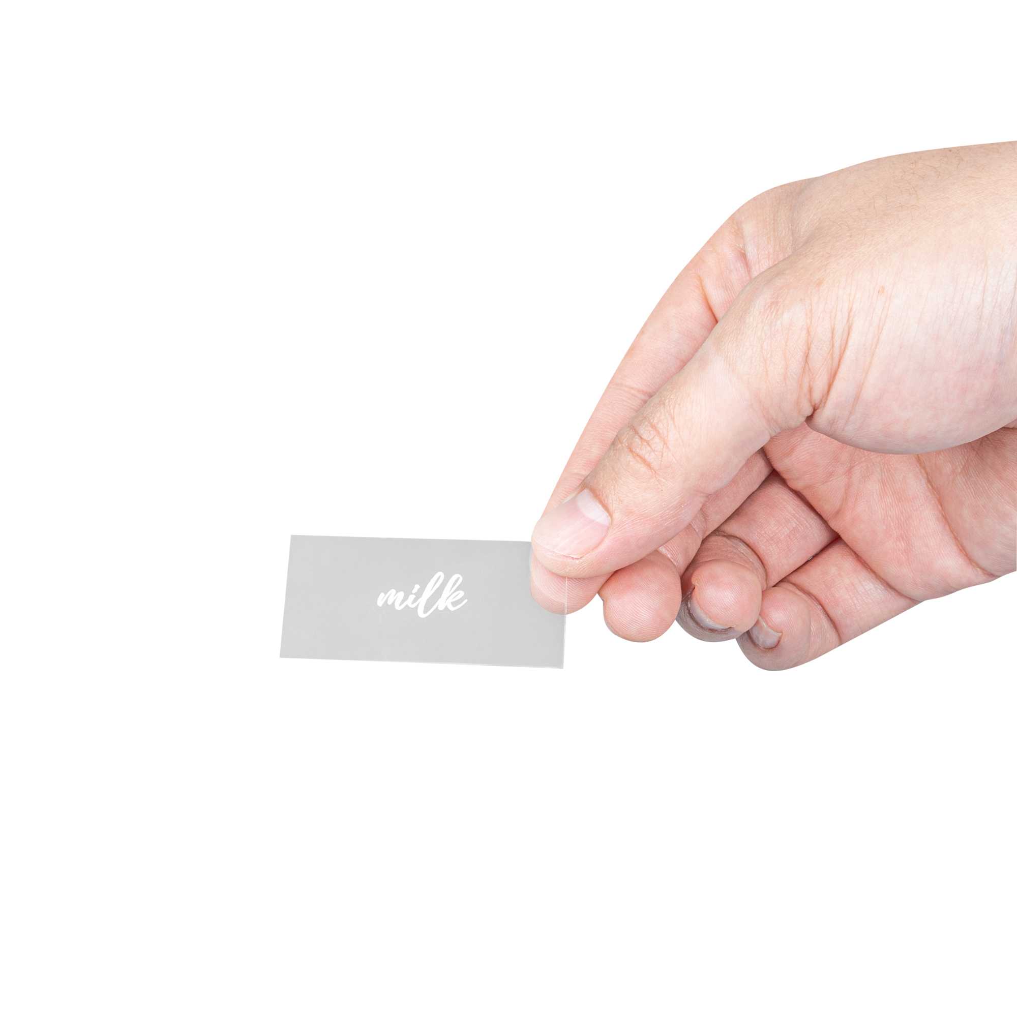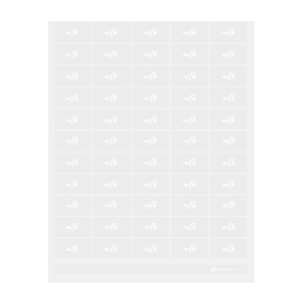 PLASTIC MILK LABEL - CLEAR WITH WHITE FONT, WATER-RESISTANT