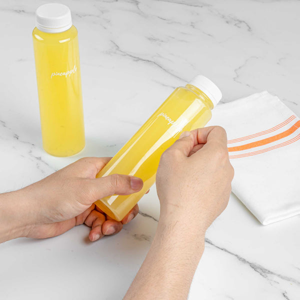 Make smoothies, juices, and shakes easy for customers to find using our Label Tek Plastic Pineapple Labels. Great for grocery stores, bars, or restaurants, these stickers for juice bottles have a water-resistant construction that is made to hold up against condensation from chilled beverages to keep stickers in place. These pineapple labels feature a clear background and a white cursive font that reads "pineapple" so guests can quickly identify their desired beverages while minimizing direct contact with other bottles or containers. These kitchen label stickers are designed with a strong adhesive that expertly seals onto all kinds of surfaces. Coordinate these beverage labels with our collection of tamper-evident juice bottles and drink pouches to securely package pineapple juices for take out or delivery services. To make the most out of your kitchen's storage space, these stickers for juice bottles arrive in a sheet. These pineapple labels measure 2 inches in length and 1 inch in width. Sold in a 100 count box. Browse our selection of water-resistant labels to find the perfect packaging solution for your take out orders.