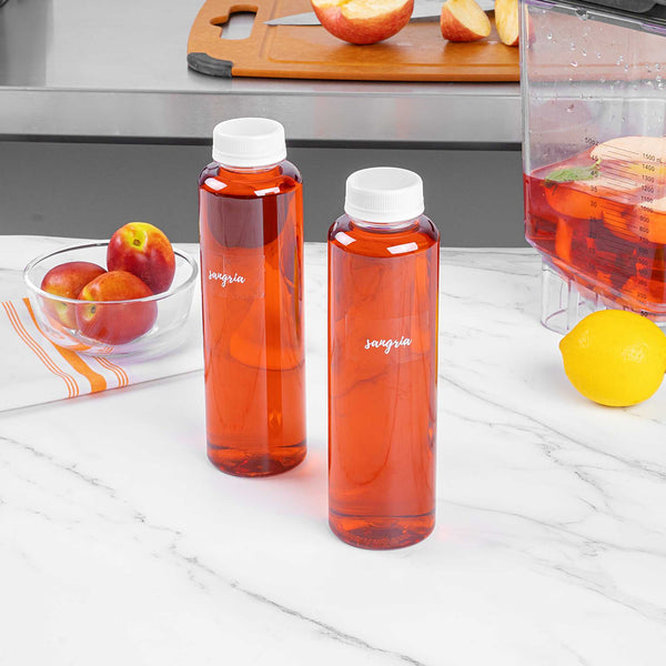Enhance organization at your bar or restaurant by labeling bottled sangrias using our Label Tek Plastic Sangria Labels. These cocktail labels read "SANGRIA" in white cursive font to add a trendy look to prepackaged sangrias while preventing servers from mixing up drink orders. With a water-resistant design, these sangria stickers allow you to store labeled sangrias in commercial fridges without worrying about condensation smudging stickers. Featuring a clear background, these sangria labels bring a cohesive look on juice bottles and allow customers to quickly distinguish sangrias from other cocktails in refrigerator cases. Perfect for labeling sangrias for take out and delivery services, these sangria stickers make fruit-filled sangrias stand out and eliminate the need for customized labels. These sangria cocktail labels arrive in a sleeve, providing you with an effortless way to label bottled sangrias. Coordinate these clear cocktail labels with our tamper-evident juice bottles and drink pouches to prevent accidental spills when serving beverages. These plastic labels measure 2 inches long by 1 inch wide. Shipped in a 100 count box. Juice bottles and drink pouches are sold separately. Browse our collection of drink labels to conveniently label bottled drinks and eliminate the need for customers to sort through bottles.