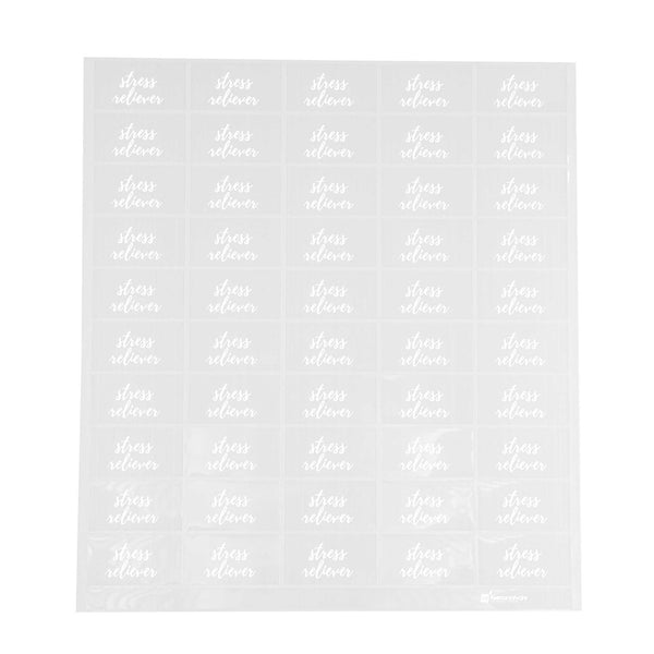 Create playful drink presentations using our Label Tek Plastic Stress Reliever Labels. Ideal for packing up to-go beverage orders, these plastic labels are designed with a water-resistant construction that conveniently holds up against condensation to prevent labels from peeling off. These clear labels include a white cursive font that reads "Stress Reliever" so customers can quickly identify and grab their desired beverages without having to sort through other bottles. Perfect for sealing take out containers or bags, these clear labels are made with a strong adhesive back. The clear background of these decorative adhesives provide an effortless way of matching the decor and packaging at your foodservice establishment. These plastic labels arrive in a sheet so employees can label items in a speedy and hassle-free manner. These clear labels measure 2 inches in length by 1 inch in width. Sold in a 100 count box. Browse our selection of water-resistant labels to find the perfect packaging solution for your take out orders.