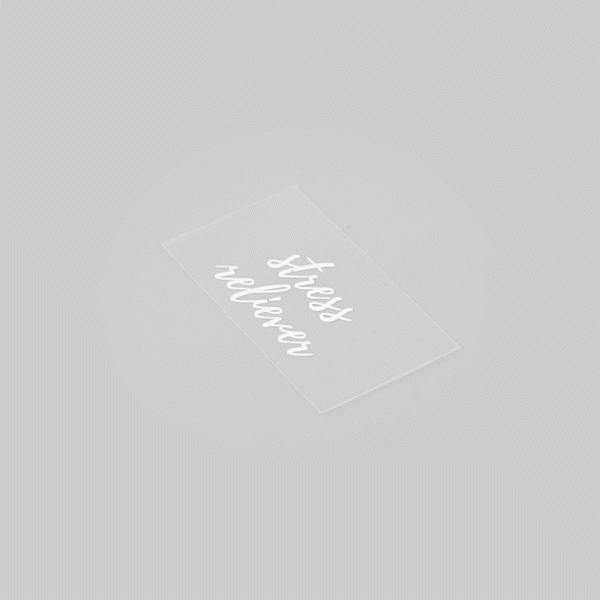 PLASTIC STRESS RELIEVER LABEL - CLEAR WITH WHITE FONT, WATER-RESISTANT