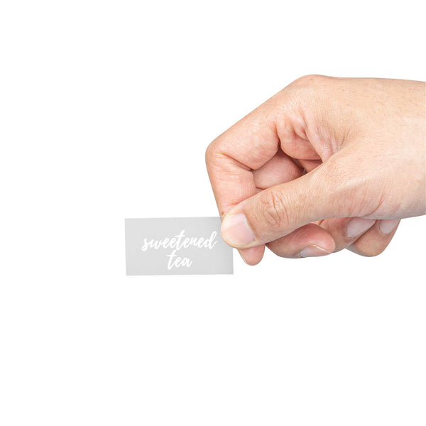 Make your sweetened teas easy to identify in your restaurant or grab-and-go operation using our Label Tek Plastic Sweetened Tea Labels. These water-resistant labels are built to hold up to condensation, ensuring that stickers stay legible and don't peel off when labeling chilled sweetened teas. Each tea label reads "sweetened tea" in a trendy font to provide drink pouches with a unique and eye-catching look while eliminating the need for personalized labels. These tea labels have a clear background to create a seamless and cohesive appearance on tea bottles. Pair these beverage labels with our collection of tamper-evident juice bottles and drink labels to securely package to-go sweetened teas. Measuring 2 inches long by 1 inch wide, these sweetened tea labels come in a sheet to make the tea labeling process a breeze. Sold in a 100 count box. Juice bottles and drink pouches are available and sold separately. Browse our line of beverage labels to organize your grab-and-go beverages and prevent patrons from making unnecessary contact with other bottles.