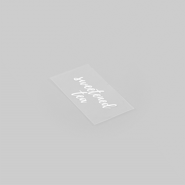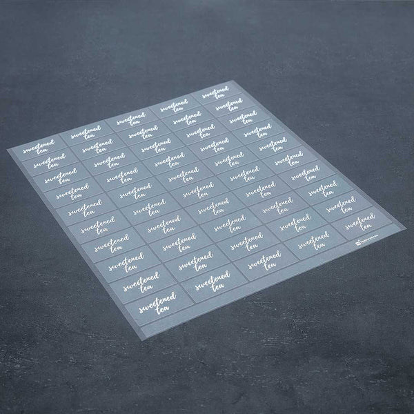 PLASTIC SWEETENED TEA LABEL - CLEAR WITH WHITE FONT, WATER-RESISTANT