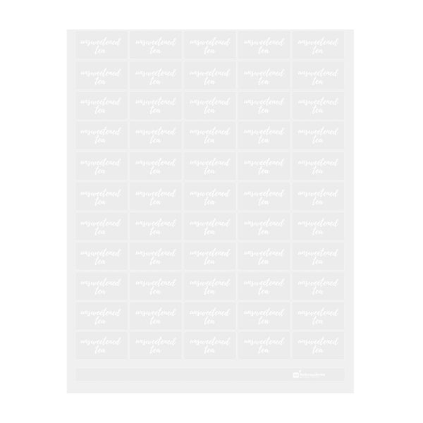 PLASTIC UNSWEETENED TEA LABEL - CLEAR WITH WHITE FONT, WATER-RESISTANT