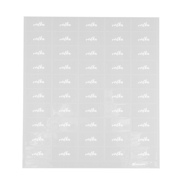 PLASTIC VODKA LABEL - CLEAR WITH WHITE FONT, WATER-RESISTANT