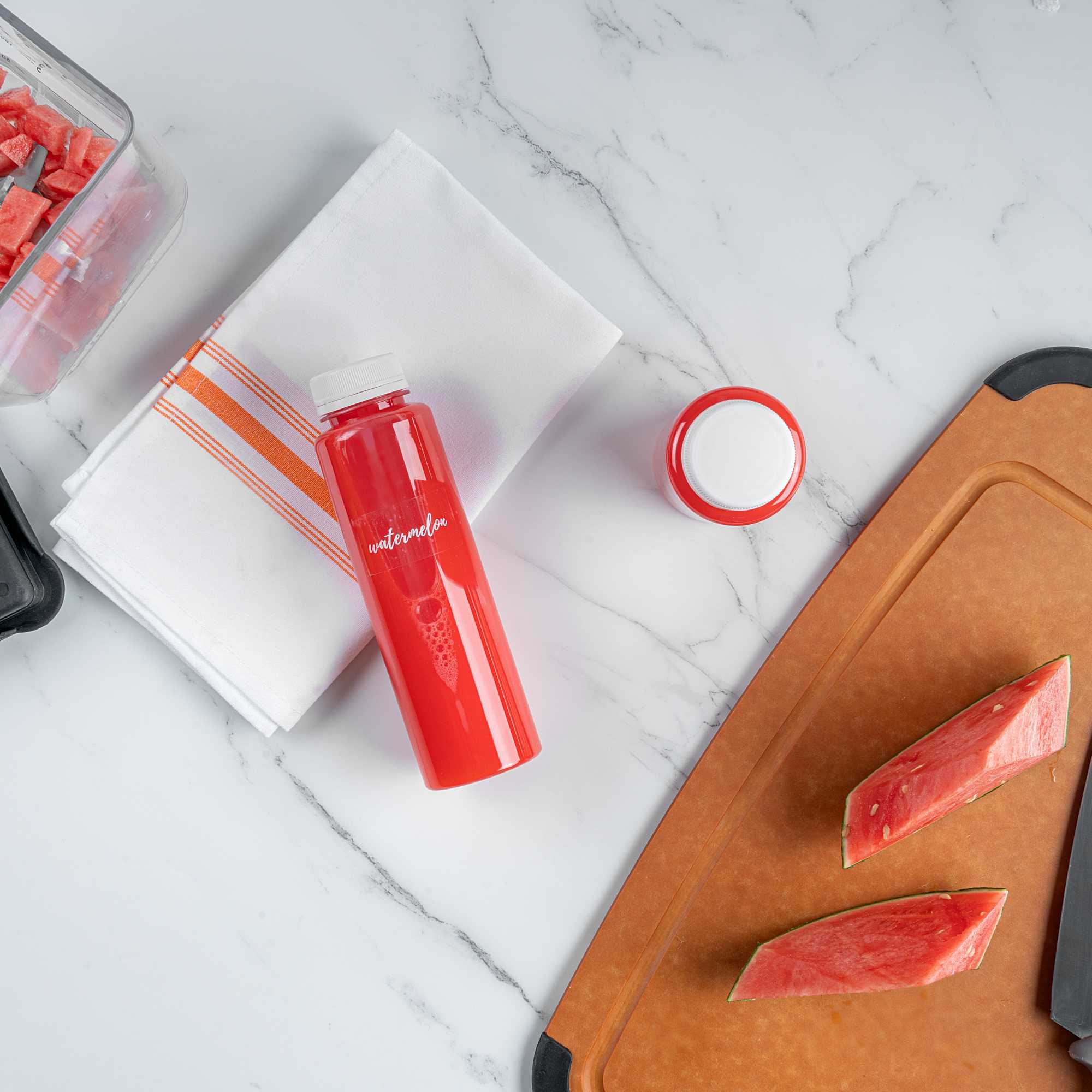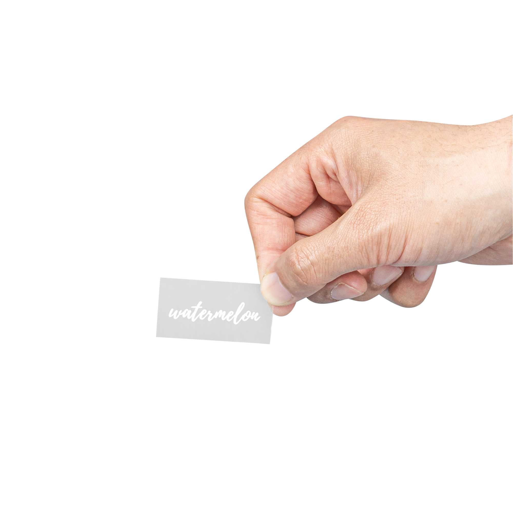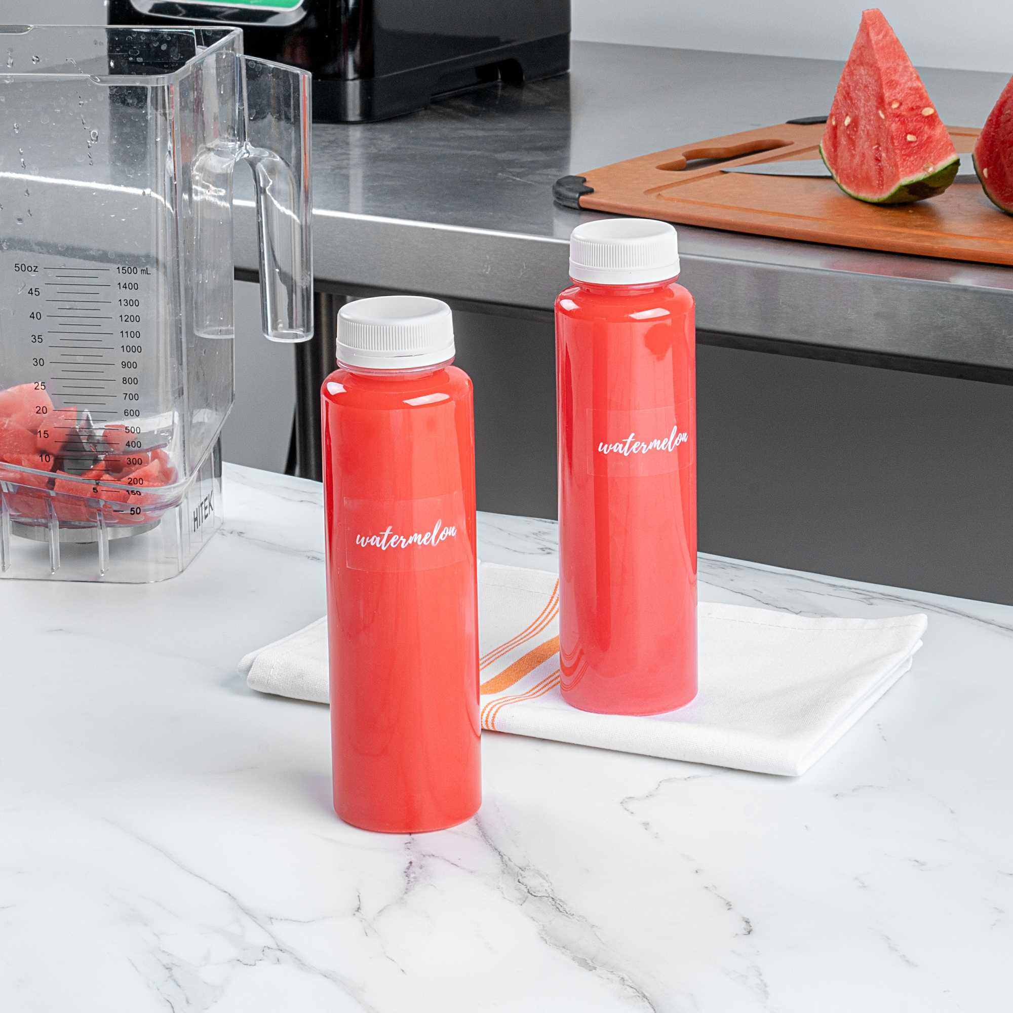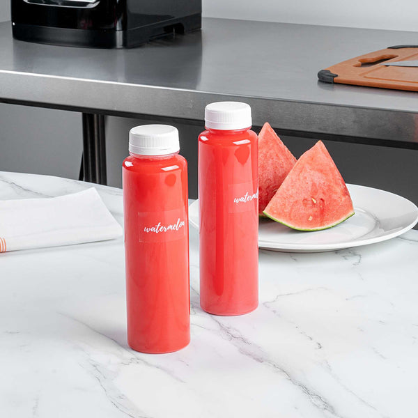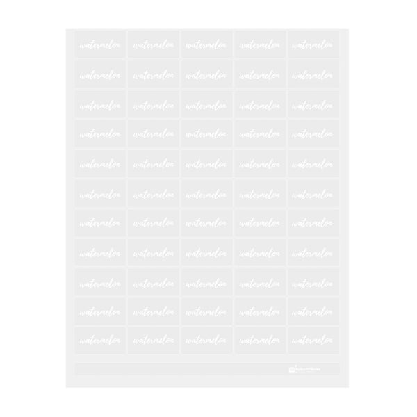 Label bottled watermelon juices for take out or delivery services using our Label Tek Plastic Watermelon Labels. Made from premium plastic, these juice bottle labels are water-resistant to ensure they hold up to condensation and don't smudge when labeled juice bottles are stored in commercial fridges. These beverage bottle labels read "watermelon" in cursive, providing your staff with a simple way to organize bottled watermelon juices in drink displays and increase order accuracy at your cafeteria, restaurant, or juice shop. Featuring a clear background with white font, these fruit juice labels create a cohesive and stylish look that elevates the aesthetics of your grab-and-go watermelon juices. Securely seal to-go watermelon juices by coordinating these juice stickers with our selection of tamper-evident juice bottles and drink pouches. These watermelon labels arrive in a sheet, providing your employees with an easy and effortless way to label a number of bottled juices throughout their shifts. Each label for juice bottles measures 2 inches long by 1 inch wide. Shipped in a 100 count box. Drink pouches and juice bottles are available and sold separately. Browse our selection of water-resistant beverage labels to find the perfect packaging solution for your drink offerings.