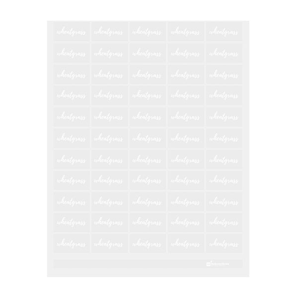 Use our Label Tek Plastic Wheatgrass Labels to keep wheatgrass juices neatly organized. With a water-resistant design, these stickers for drinks allow you to store labeled wheatgrass juices in refrigerated cases without worrying about condensation smudging stickers. Each drink sticker reads "wheatgrass" in a trendy font to add a charming look and enhance the visual aspect of your healthy juices. Plus, they allow customers to quickly identify bottled juice shots that are intended to provide them with essential nutrients. These drink stickers feature a clear background with white font to create a seamless look on juice bottles. To prevent accidental spills when serving wheatgrass juices, pair these juice stickers with our collection of coordinating juice bottles and drink pouches. Measuring 2 inches long by 1 inch wide, these wheatgrass labels arrive in a sheet to streamline the labeling process at your restaurant or grab-and-go operation. Shipped in a 100 count box. Juice bottles and drink pouches are available and sold separately. Browse our selection of juice labels to create a cohesive look and eliminate the need for personalized labels.