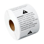 Provide suffocation warning using our Label Tek White Paper Suffocation Warning Labels. These square labels come in a bright white finish with letters printed in black to provide high visibility. Plus, the letters on these stickers are in large fonts for easy identification. With a large caution symbol, these stickers for packages provide a suffocation warning to the consumers of your plastic bags. Manufactured with strong adhesives, these caution labels let you stick them on different surfaces conveniently. These warning stickers are highly sustainable, as they are made of high-quality paper. Each of these stickers measures 2 inches in length by 2 inches in width. Shipped in a 500 count roll.