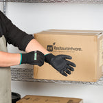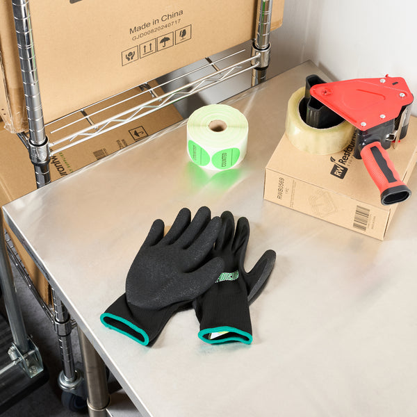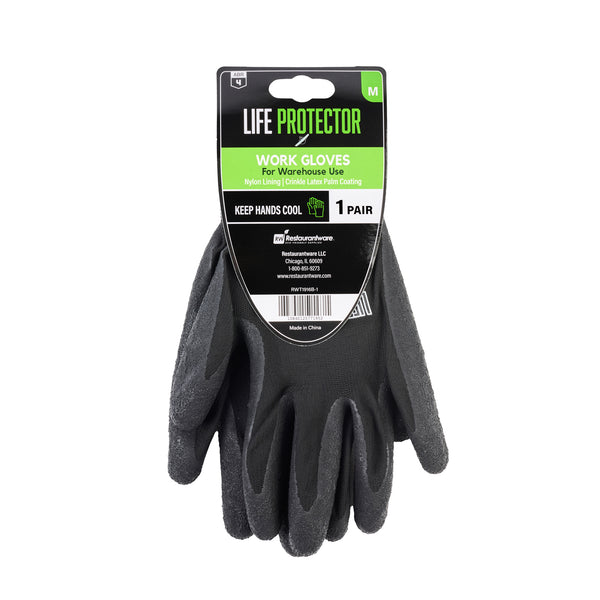 Protect your hands during tough tasks with our Life Protector Black Nylon Medium Work Gloves. Featuring a latex coating, these work gloves resist punctures and avoid absorbing moisture, protecting hands from sharp objects or potential injuries. The crinkle pattern on these heavy-duty gloves significantly improves the grip, especially on slippery or wet surfaces, and reduces the likelihood of slipping. Equipped with a breathable nylon lining, these black work gloves keep hands cool and offer a comfortable fit, reducing friction against the skin. With a 13-gauge thickness, these protective gloves provide an added layer of protection while working in demanding conditions. Designed for warehouse work, these black gloves are ideal for handling heavy materials and equipment. These heavy-duty work gloves are hand washable for easy upkeep and maintenance. The sleek black finish of these warehouse gloves helps conceal dirt and wear, ensuring a neat look even in demanding environments. Measuring 9.5 inches in length by 4.25 inches in width, these black warehouse gloves offer a perfect fit for various tasks. Each order includes 10 pairs of medium work gloves.