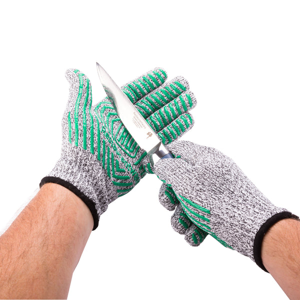GRAY XL CUT-RESISTANT GLOVES - PAIR, LEVEL 5, NON-SLIP, FOOD SAFE