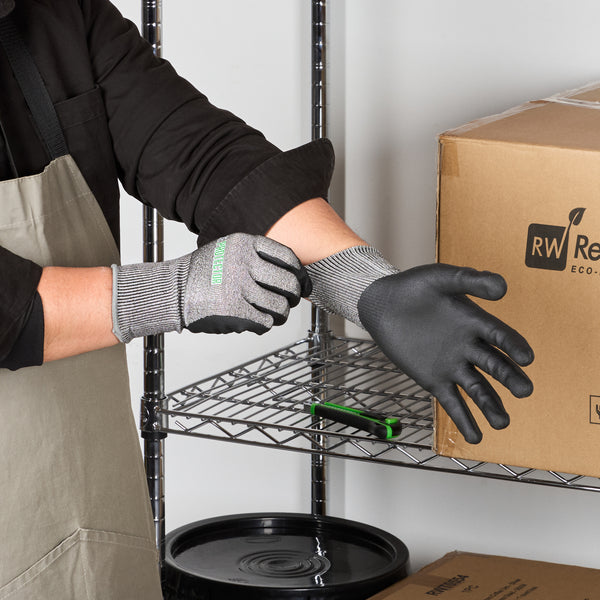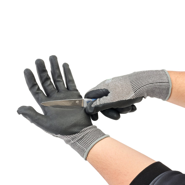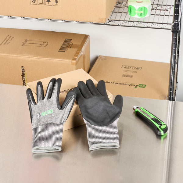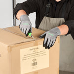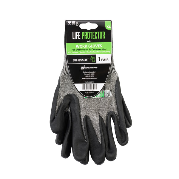 Equip your team with our Life Protector Gray HPPE Polyester / Spandex Extra Large Work Gloves. These heavy-duty gloves feature an ultra-thin foam nitrile coating and are resistant to abrasives while ensuring a superior grip on both dry and wet surfaces. Designed with a breathable foam composition, these nitrile-coated gloves keep hands cool and dry throughout the workday. The HPPE fibers of these protective gloves are cut-resistant, safeguarding hands from sharp edges and blades. With a lining crafted from a blend of polyester and spandex, these gray work gloves offer a comfortable fit that improves hand movement during extended wear. Boasting a 15-gauge thickness, these mechanic gloves add an extra layer of protection in tough working conditions. Hand washable for easy upkeep, these heavy-duty work gloves promise a hassle-free cleaning experience. Featuring a sleek gray finish, these gray gloves maintain a professional look while effectively hiding dirt and stains. Measuring 10.25 inches in length by 4.25 inches in width, these work gloves are designed for optimal coverage and fit. Each order includes 10 pairs of extra large work gloves.