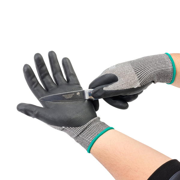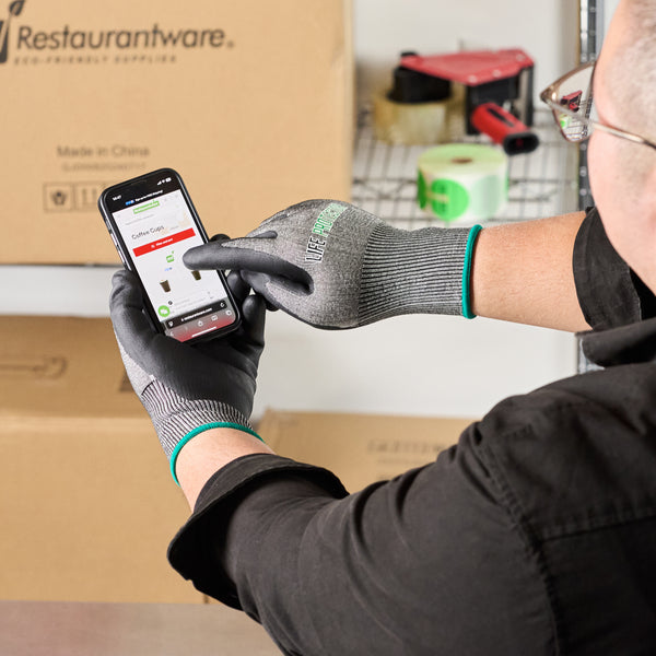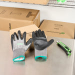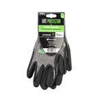 Combine durability and comfort for your work needs with our Life Protector Gray HPPE Polyester / Spandex Medium Work Gloves. Featuring an ultra-thin foam nitrile coating, these heavy-duty gloves are resistant to abrasions while ensuring you maintain a superior grip on both dry and wet surfaces. Designed with breathable foam technology, these protective gloves keep your hands cool and dry throughout the day. The HPPE fibers of these work gloves make them cut-resistant, safeguarding your hands from sharp edges and blades. These mechanic gloves are equipped with a lining crafted from a blend of polyester and spandex that ensures a snug fit and improved hand movement during extended wear. With a 15-gauge thickness, these gray work gloves offer an added layer of protection in tough working conditions. These gray gloves are hand washable, making upkeep and maintenance simple. The gray finish of these heavy-duty work gloves adds a sleek, professional look while effectively hiding dirt and stains. Measuring 9.5 inches in length by 3.75 inches in width, these premium work gloves are perfectly sized for medium hands. Each order includes 1 pair of medium work gloves.