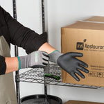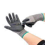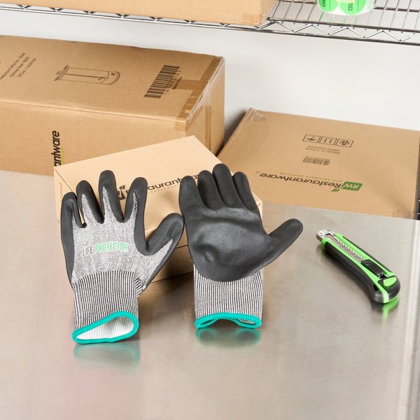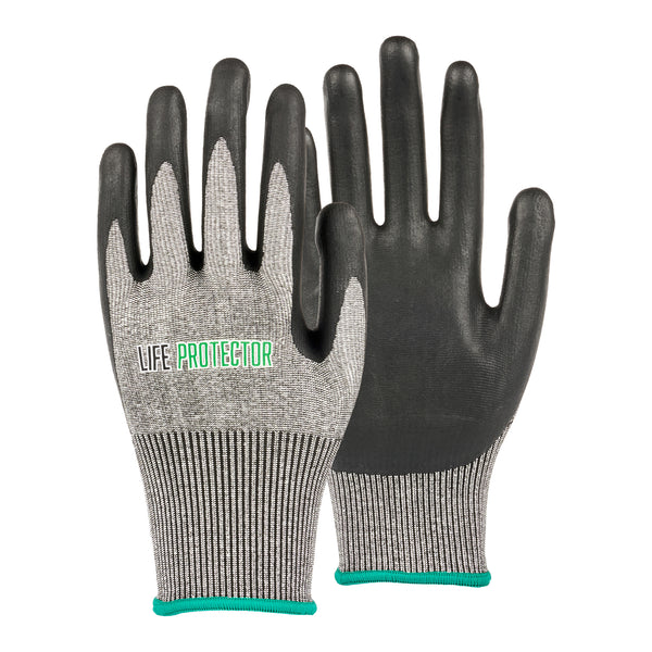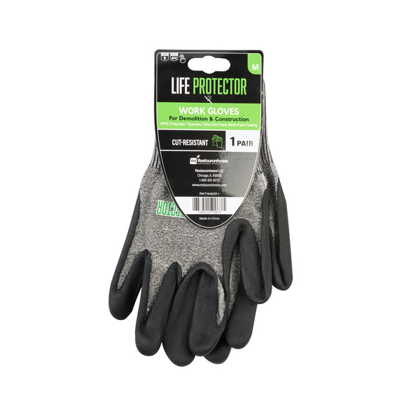 Combine durability and comfort for your work needs with our Life Protector Gray HPPE Polyester / Spandex Medium Work Gloves. Featuring an ultra-thin foam nitrile coating, these heavy-duty gloves are resistant to abrasions while ensuring you maintain a superior grip on both dry and wet surfaces. Designed with breathable foam technology, these protective gloves keep your hands cool and dry throughout the day. The HPPE fibers of these work gloves make them cut-resistant, safeguarding your hands from sharp edges and blades. These mechanic gloves are equipped with a lining crafted from a blend of polyester and spandex that ensures a snug fit and improved hand movement during extended wear. With a 15-gauge thickness, these gray work gloves offer an added layer of protection in tough working conditions. These gray gloves are hand washable, making upkeep and maintenance simple. The gray finish of these heavy-duty work gloves adds a sleek, professional look while effectively hiding dirt and stains. Measuring 9.5 inches in length by 3.75 inches in width, these premium work gloves are perfectly sized for medium hands. Each order includes 10 pairs of medium work gloves.