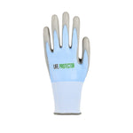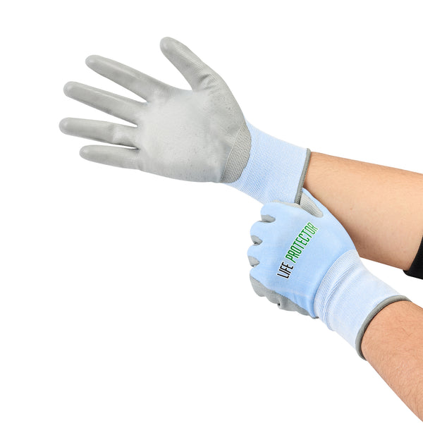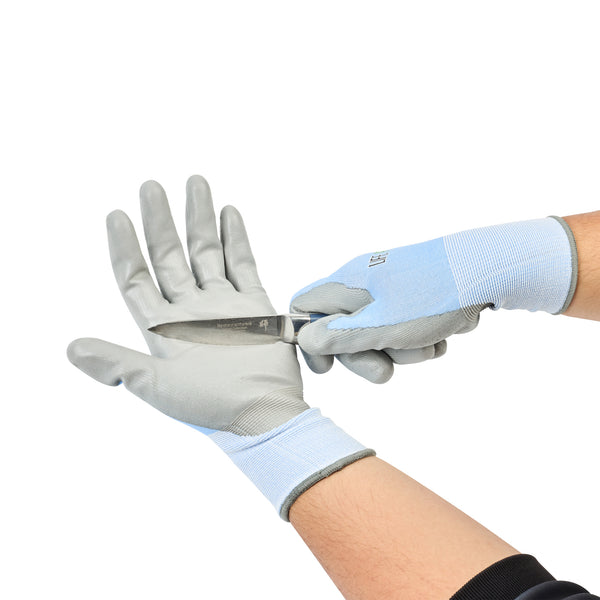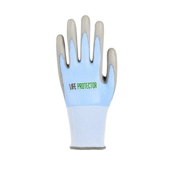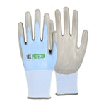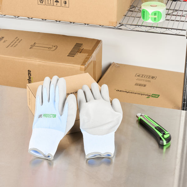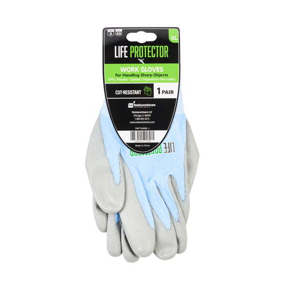 Equip your team with our Life Protector Light Blue Diamond Blend Extra Large Work Gloves. These protective gloves feature a durable foam polyurethane coating that shields hands from chemicals and corrosive substances, ensuring a safer working environment. Designed with a breathable foam design, these blue gloves keep hands cool and dry throughout long shifts. With diamond blend technology, these hand gloves are cut-resistant and offer superior protection for handling sharp objects. The 18-gauge thickness of these mechanic gloves offers exceptional protection against cuts and abrasions, ideal for rigorous work conditions in manufacturing and construction. For easy upkeep and maintenance, these heavy-duty gloves are hand washable. The light blue finish gives these work gloves a sleek, neat look that enhances any professional setting. Measuring 10.25 inches in length by 4.25 inches in width, these extra large work gloves provide ample coverage and comfort. Each order includes 1 pair of extra large work gloves.