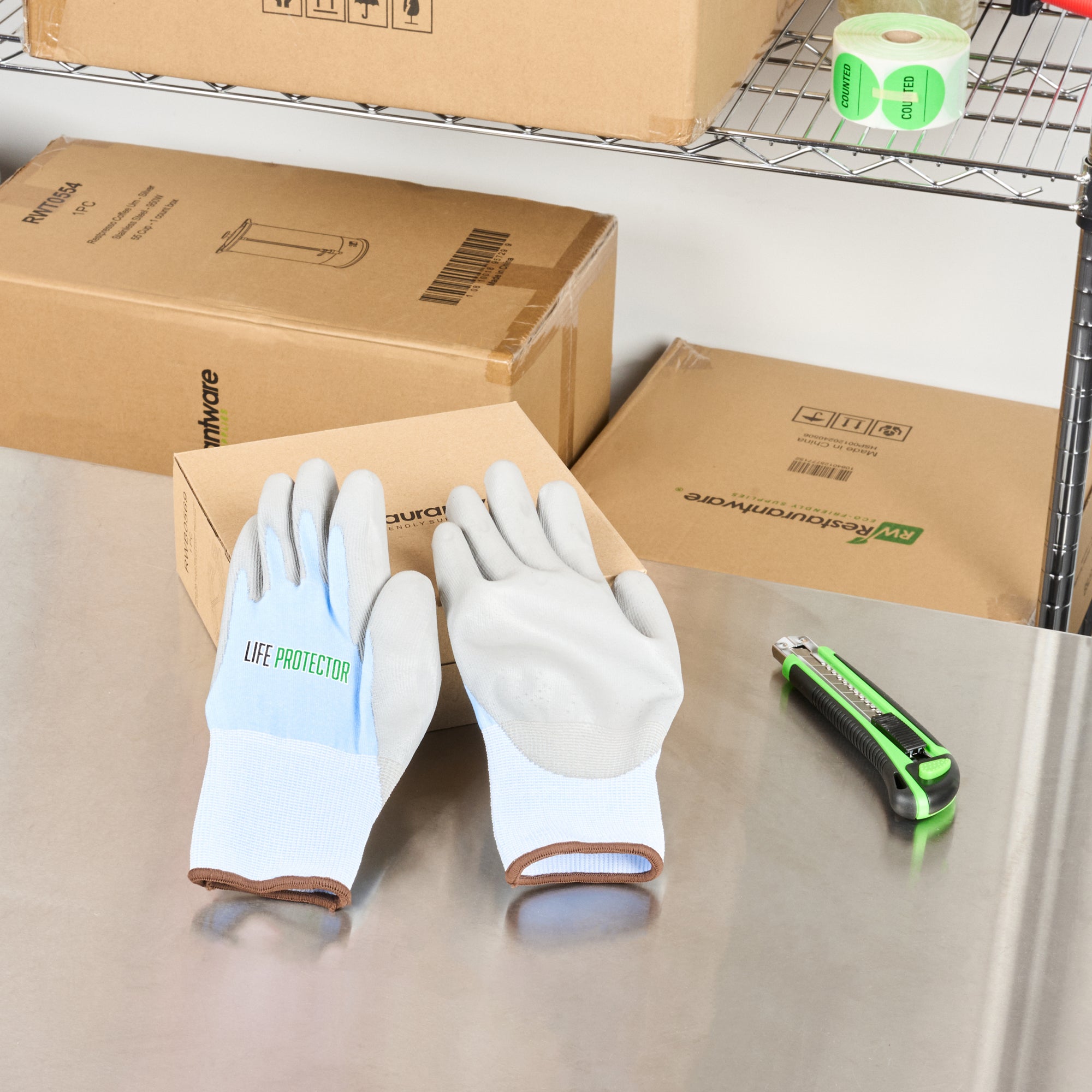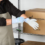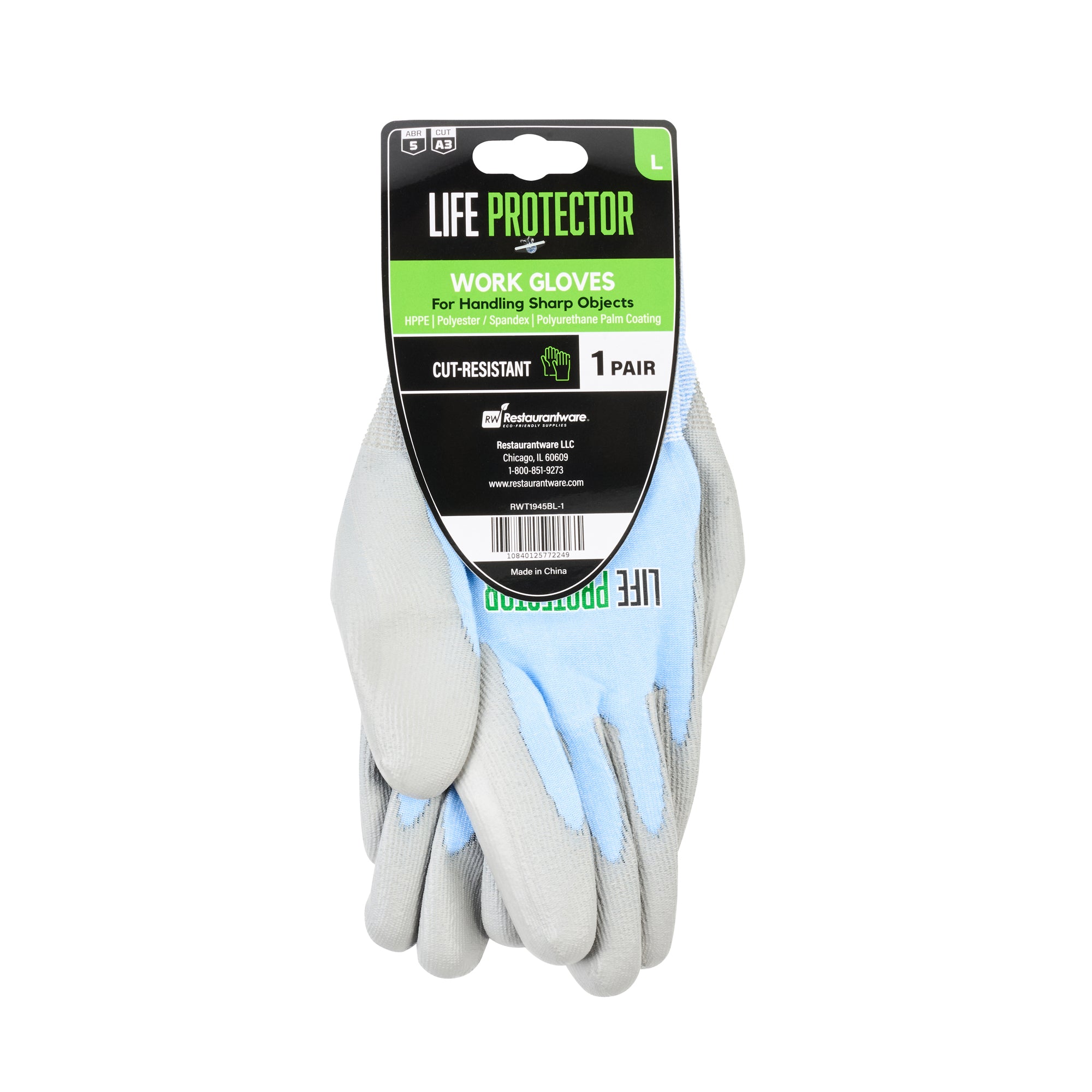 Elevate your workwear standards with our Life Protector Light Blue Diamond Blend Large Work Gloves. These heavy-duty gloves feature a polyurethane coating that shields your hands from chemicals and corrosive substances, ensuring a safer working environment. Perfect for long shifts, these blue gloves come with a breathable foam design that keeps your hands cool and dry throughout the day. With a diamond blend technology, these protective gloves are cut-resistant, making them ideal for handling sharp objects. Designed with an 18-gauge thickness, these hand gloves provide excellent protection against abrasions, making them suitable for tough industrial and construction jobs. These mechanic gloves are hand washable for easy upkeep and maintenance. The sleek light blue finish of these heavy-duty work gloves ensures a neat and professional appearance. Measuring 9.75 inches in length by 4 inches in width, these work gloves are designed to fit comfortably and securely. Each order includes 1 pair of large work gloves.