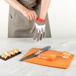 These mesh cutting gloves come with adjustable wrist straps in red, blue, white and orange shades, allowing you to pick your favorite color. Classy way to cook!